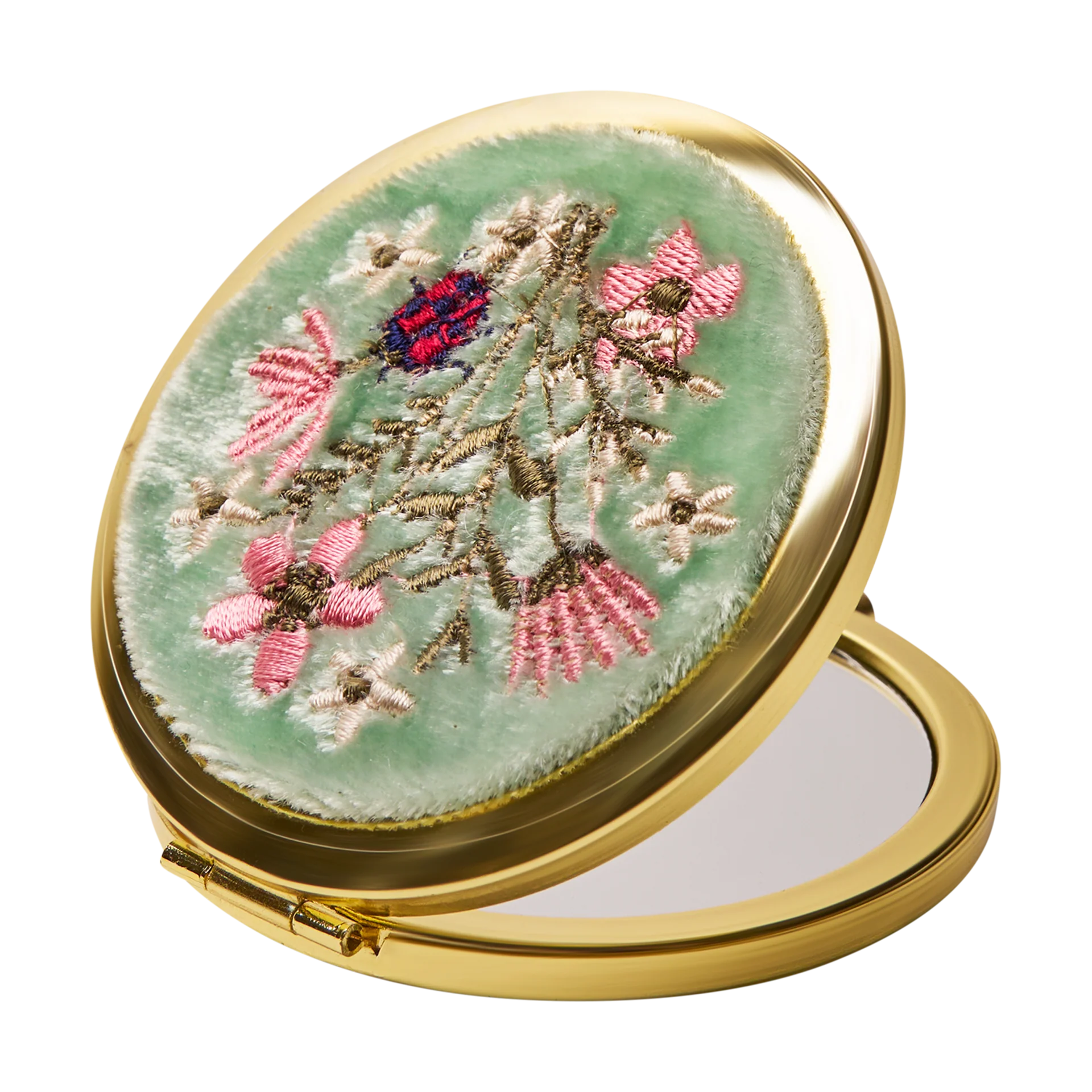 {Powder} Embroidered Compact Mirror :: Aqua Bouquet