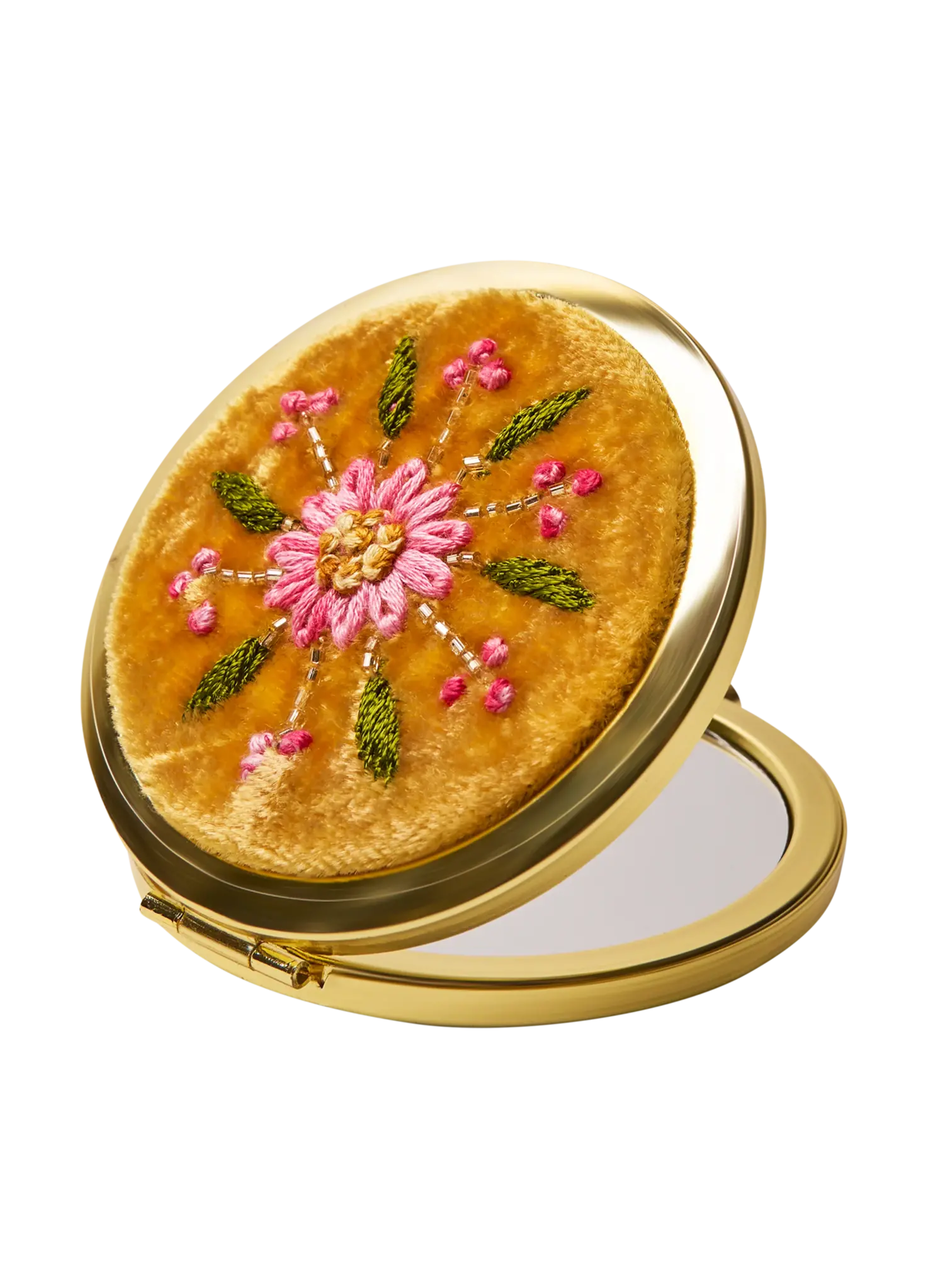 {Powder} Embroidered Compact Mirror :: Mustard Flower