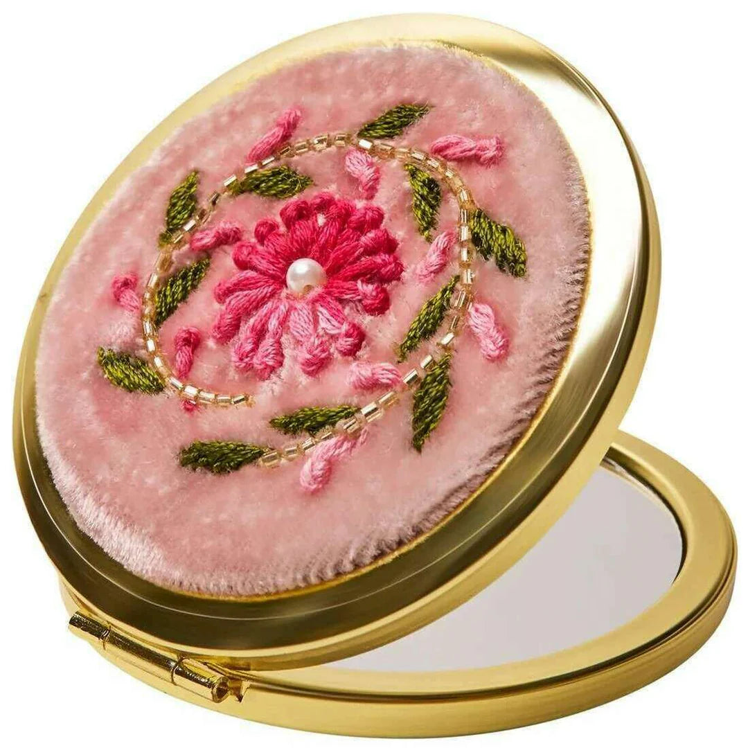 {Powder} Embroidered Compact Mirror :: Pink Petals