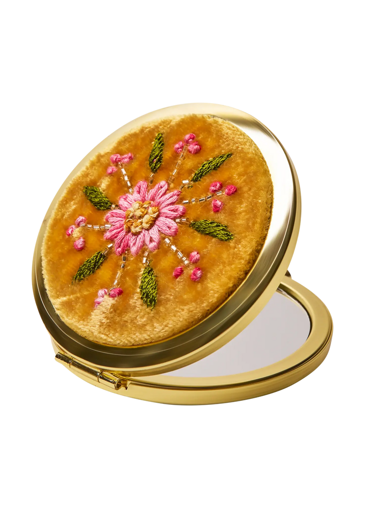 {Powder} Embroidered Compact Mirror :: Mustard Flower