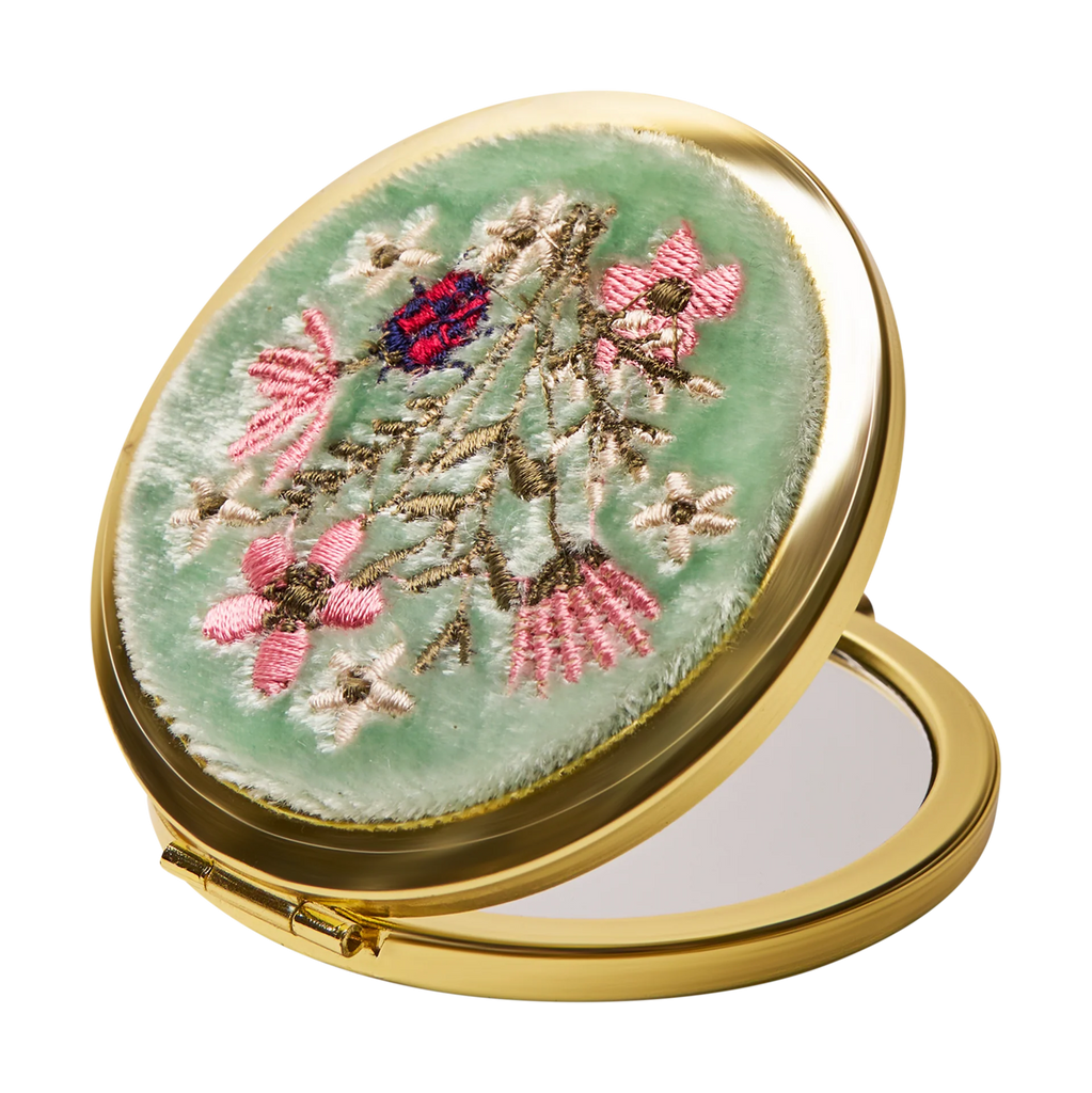 {Powder} Embroidered Compact Mirror :: Aqua Bouquet