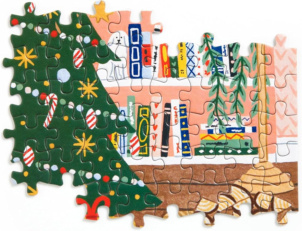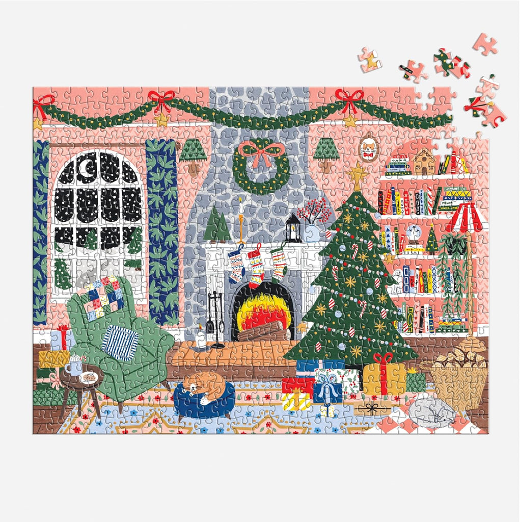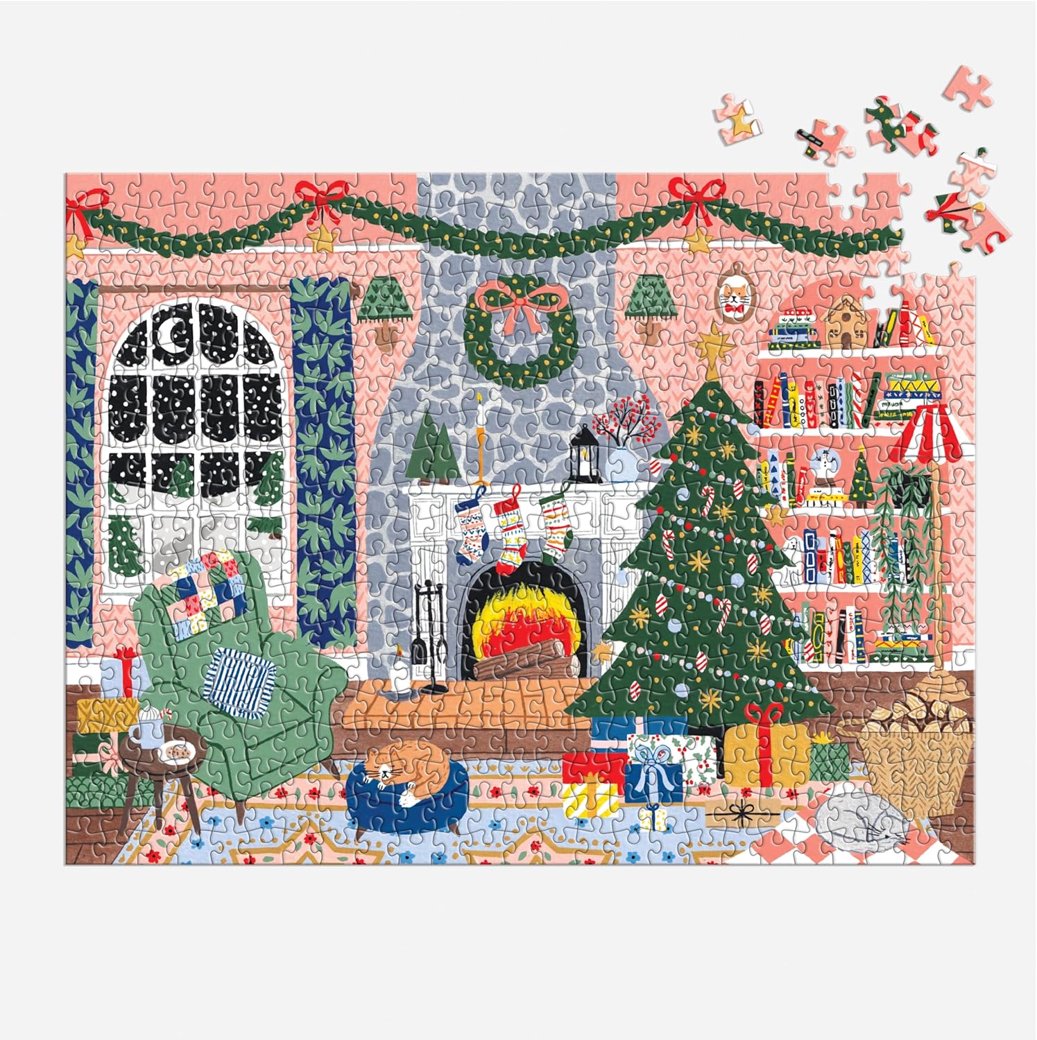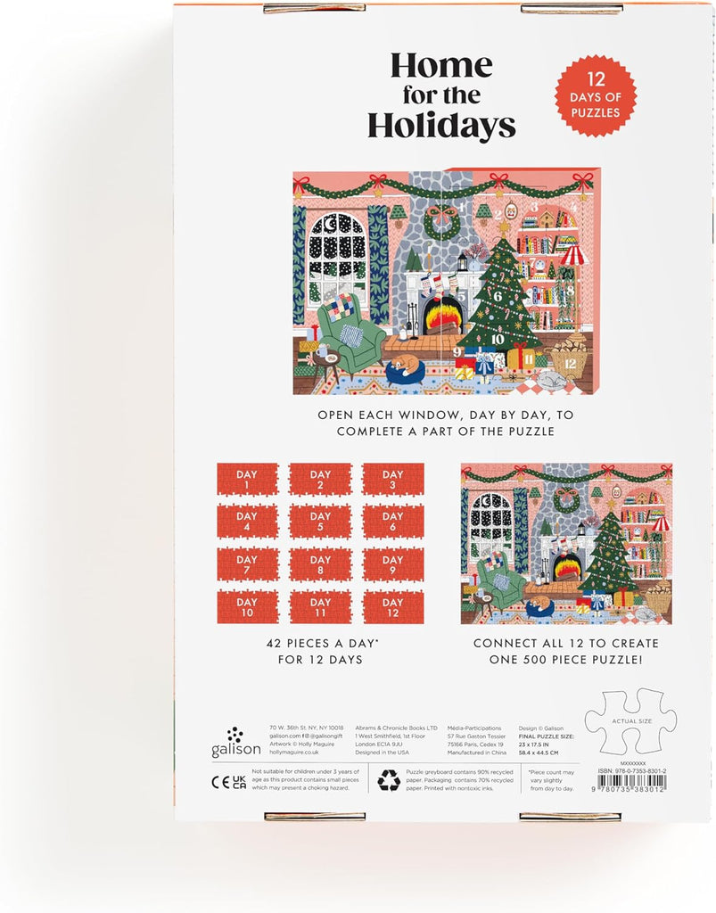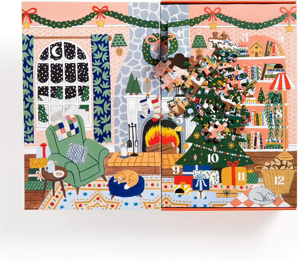 The 500 Piece Advent Calendar features a cozy and merry living room scene. Puzzle lovers will appreciate all the delightful details as they piece together the puzzle, creating a beautiful display that will add a touch of charm and holiday elegance to any room.