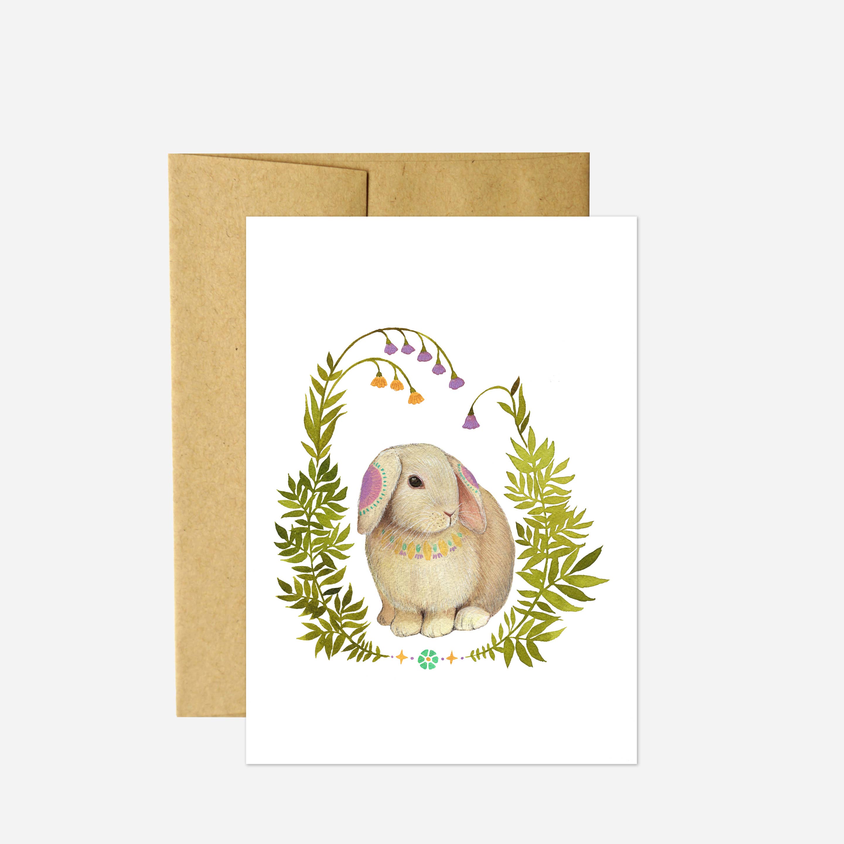 Bunny Bloom Card The card is 5"x7" and comes with a matching envelope. Blank inside so that it can be used throughout the year. Each card is carefully packed in a clear archival sleeve.