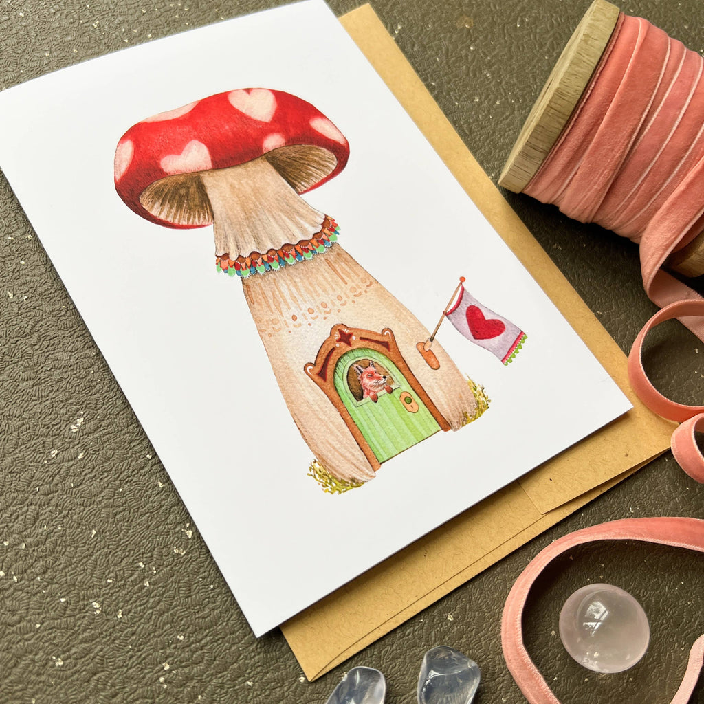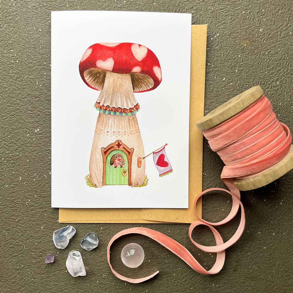 Hello Love Card The card is 5"x7" and comes with a matching envelope. Blank inside so that it can be used throughout the year. Each card is carefully packed in a clear archival sleeve.