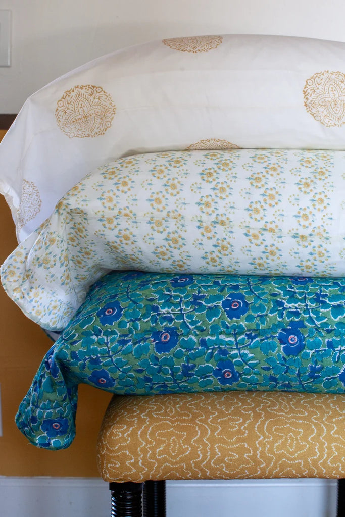 {Kerry Cassill} Hand Block Printed Cotton Pillow Case :: Gold Medallion :: Standard is backordered. It will be shipped when back in stock.