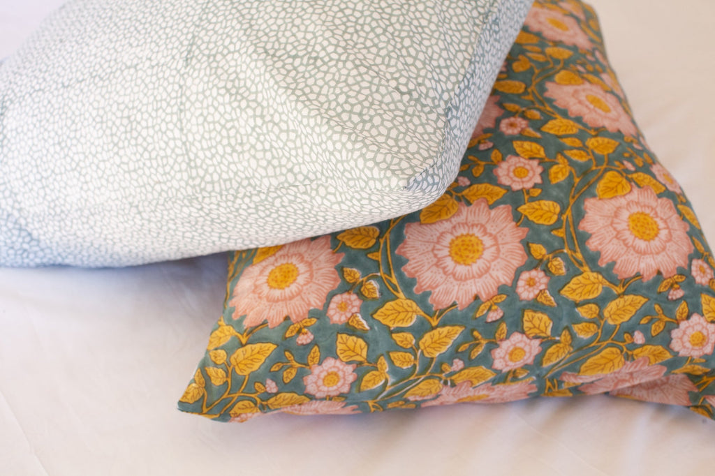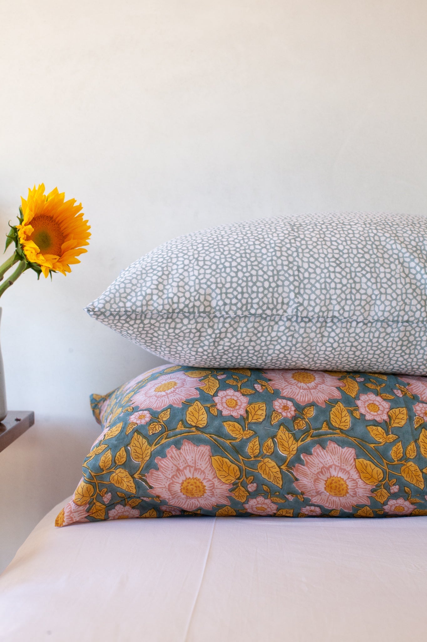 {Kerry Cassill} Hand Block Printed Cotton Pillow Case :: Indian Flower :: Standard is backordered. It will be shipped when back in stock.
