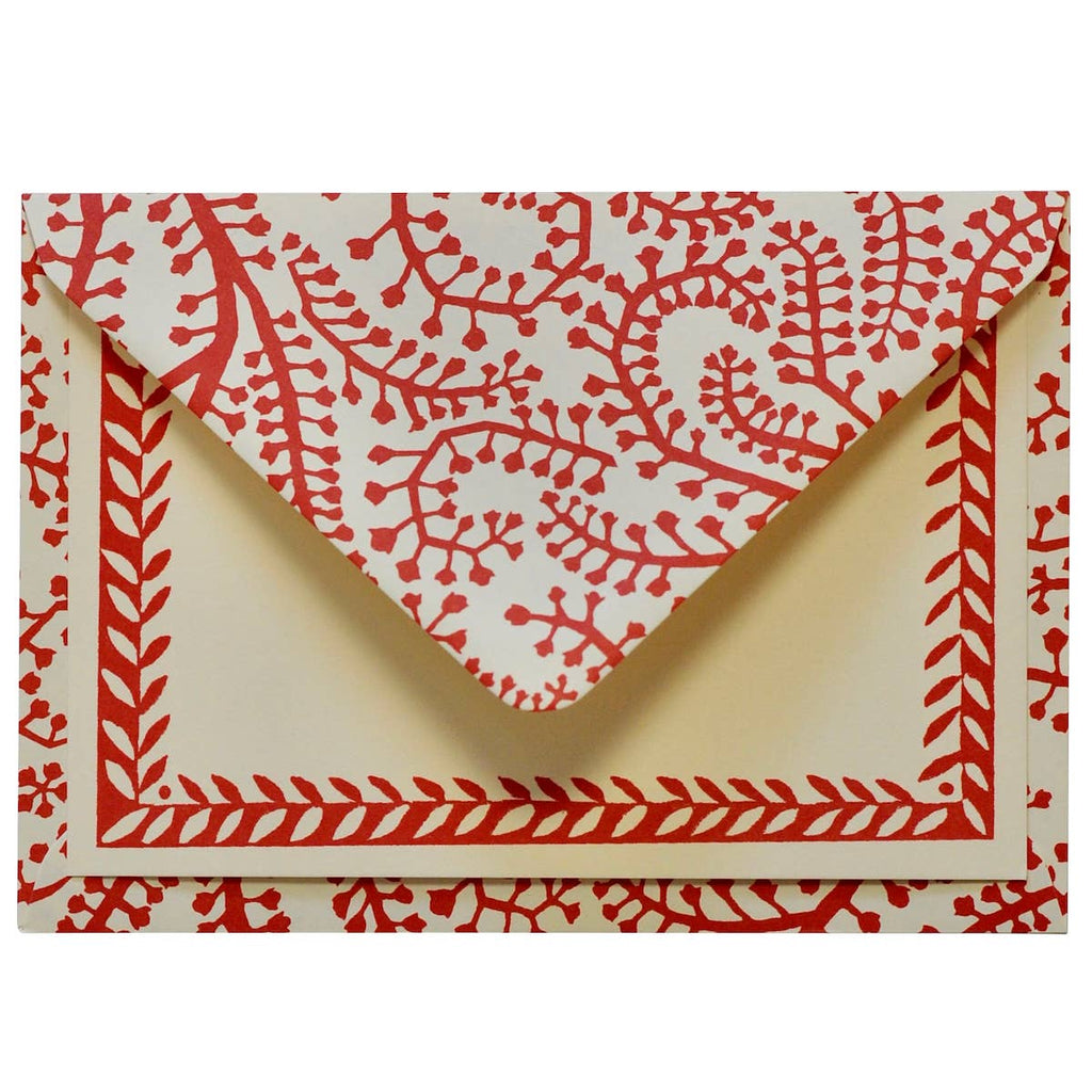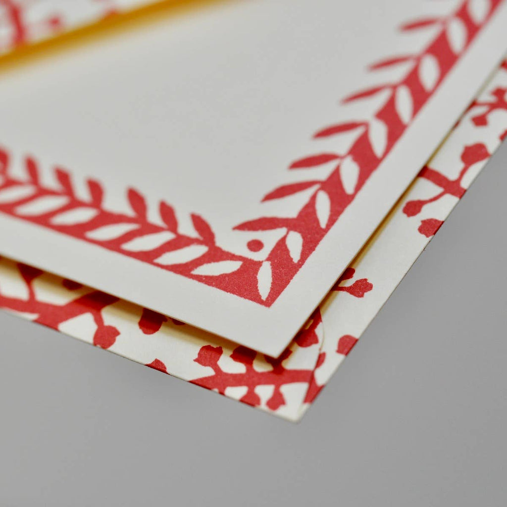 A set of ten Notecards with a patterned border, with matching patterned envelopes and address labels.