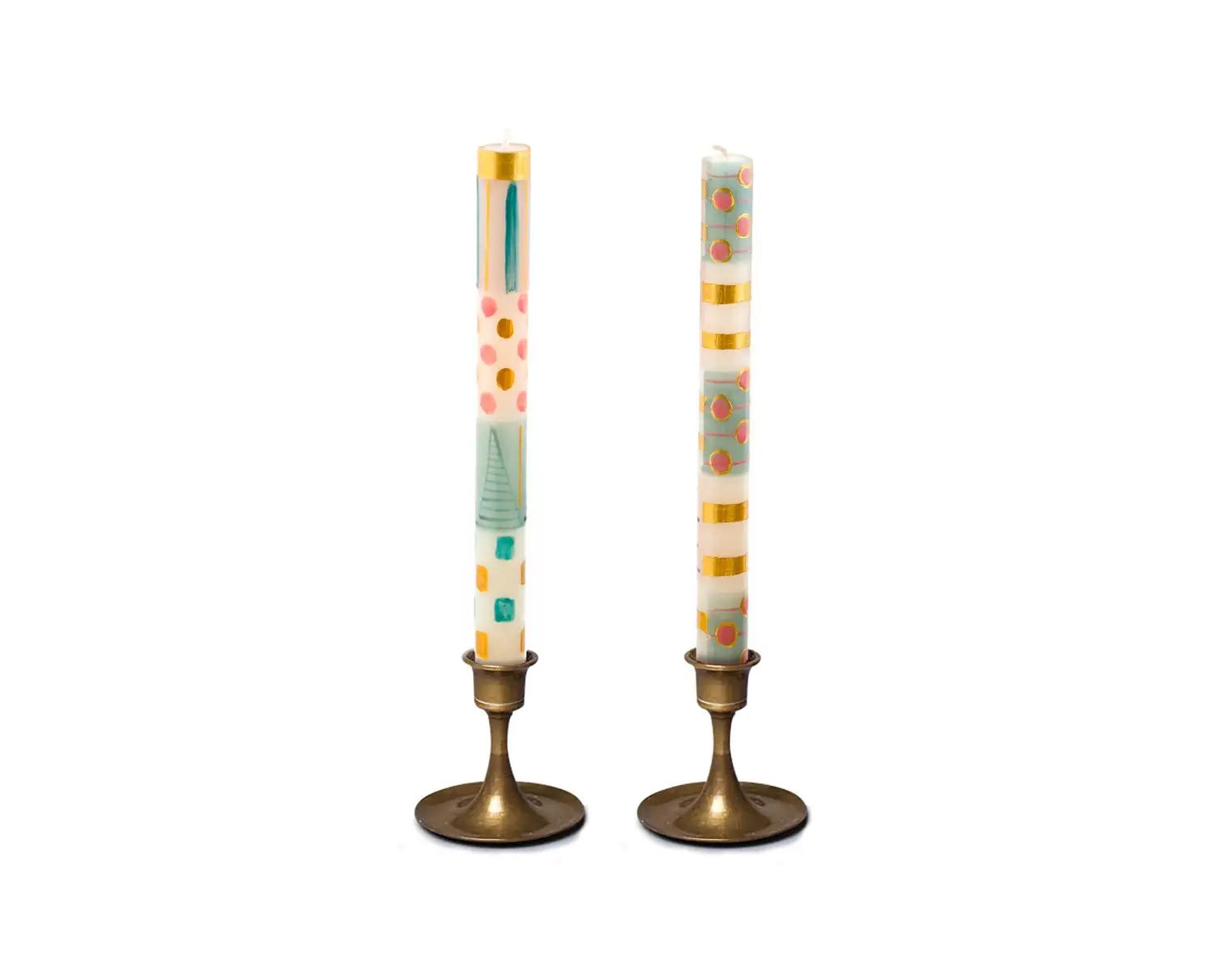 Make the occasion a special 'Delight' with these beautiful pastel and gold hand painted candles They are made with the highest quality natural paraffin wax with cotton wicks. They are unscented, smokeless and drip-free.