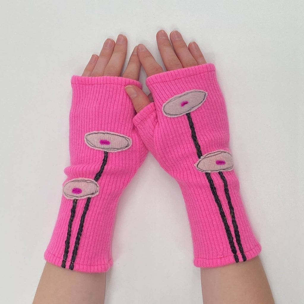 {Sardine Clothing Co.} Fingerless Cashmere Gloves :: Lupine :: Pink on Black