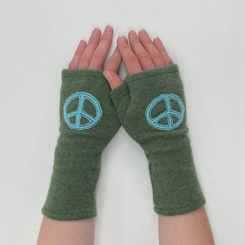 {Sardine Clothing Co.} Fingerless Cashmere Gloves :: Peace :: Aqua on Olive