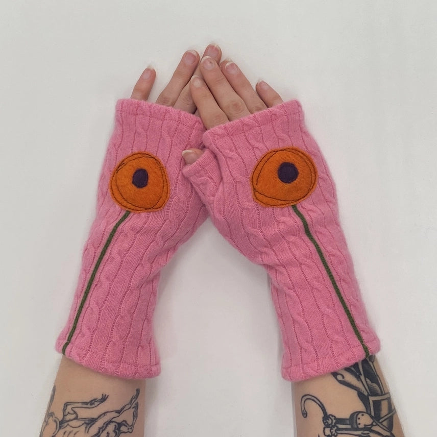 {Sardine Clothing Co.} Fingerless Cashmere Gloves :: Poppy :: Orange on Pink