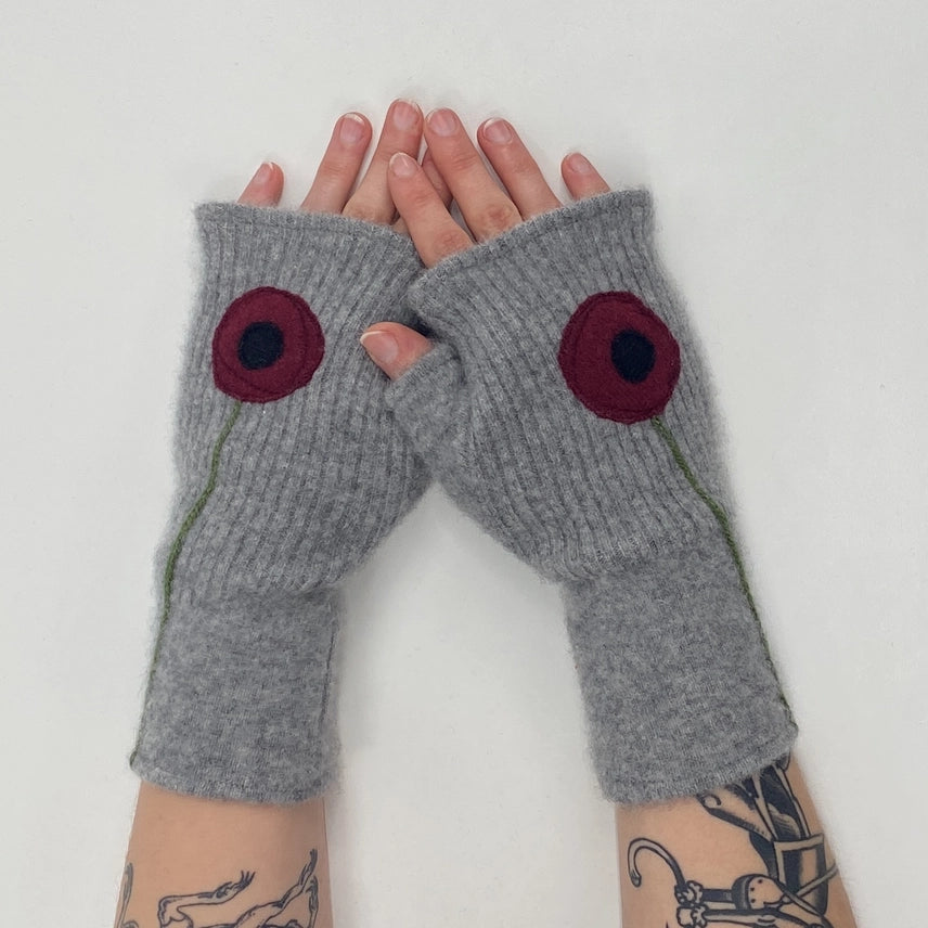 {Sardine Clothing Co.} Fingerless Cashmere Gloves :: Poppy :: Red on Grey