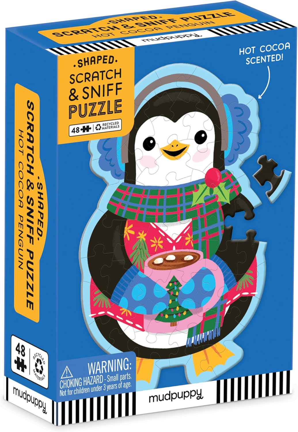 {Chronicle Books} Hot Cocoa Penguin 48 Piece Scratch & Sniff Shaped Mini Puzzle