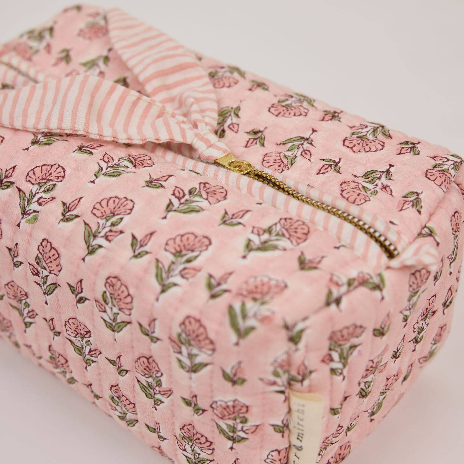 Superbly block printed by master artisans and handcrafted in small batches, this quilted toiletry bag is made using soft luxurious organic cotton and features signature bock print designs. Thoughtfully designed with a wipe-clean lining and four practical internal pockets, it keeps your essentials neatly organised – whether at home or on your travels.