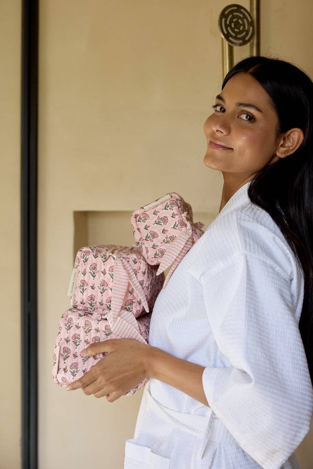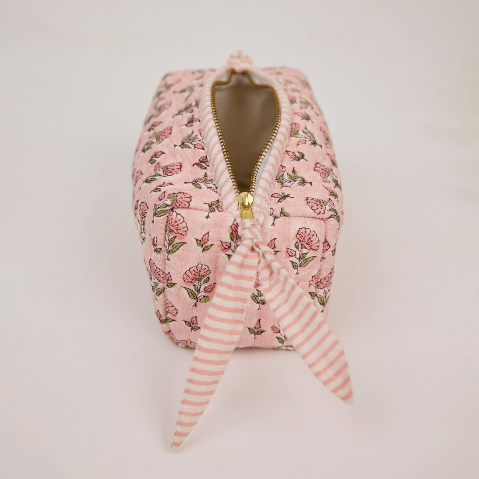 Superbly block printed by master artisans and handcrafted in small batches, this quilted toiletry bag is made using soft luxurious organic cotton and features signature bock print designs. Thoughtfully designed with a wipe-clean lining and four practical internal pockets, it keeps your essentials neatly organised – whether at home or on your travels.