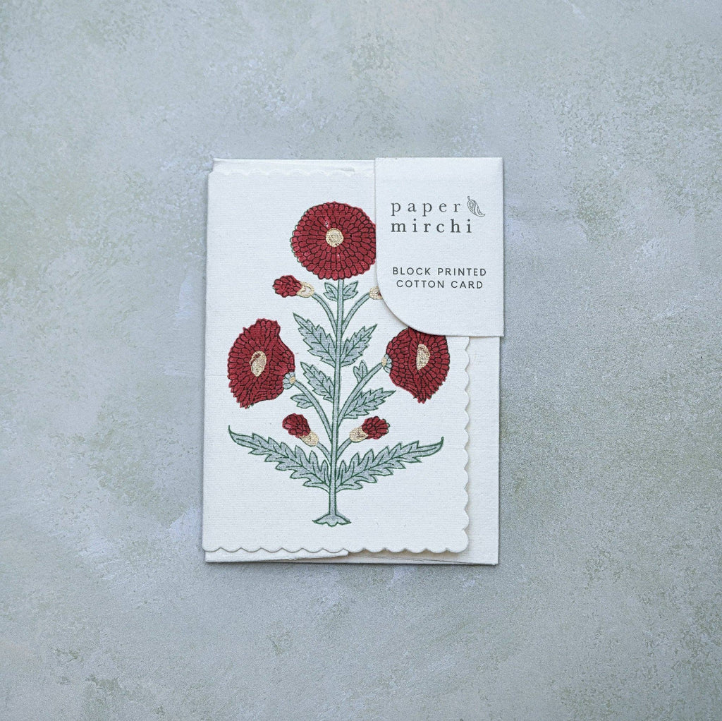 {Paper Mirchi} Hand Block Printed Greeting Card :: Genda Sage