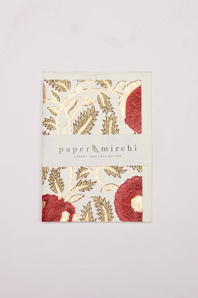{Paper Mirchi} Hand Block Printed Greeting Card :: Anaar Scarlet