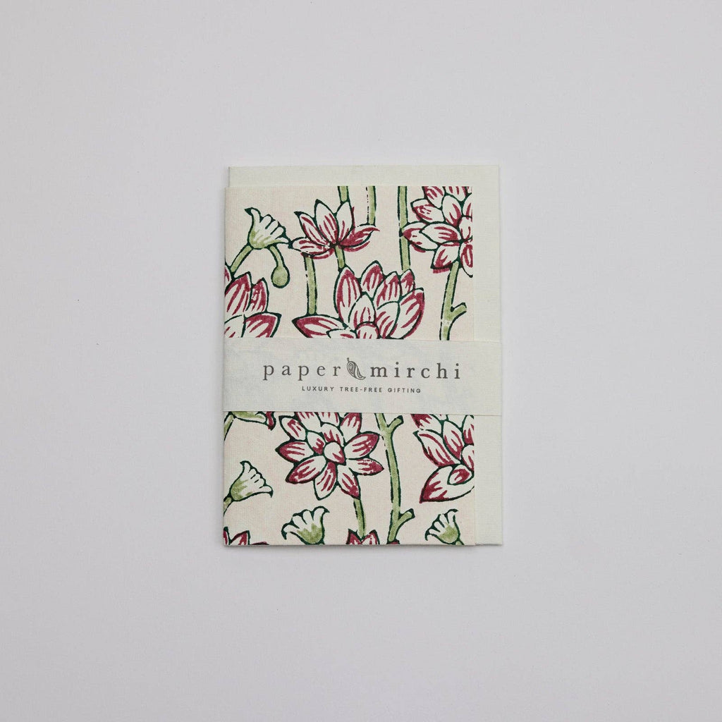 {Paper Mirchi} Hand Block Printed Greeting Card :: Lotus Cherry