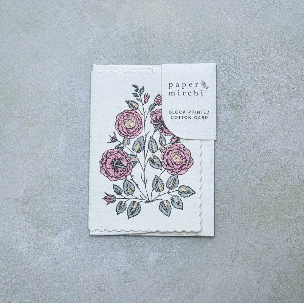 {Paper Mirchi} Hand Block Printed Greeting Card :: Gulab Dusky Pink