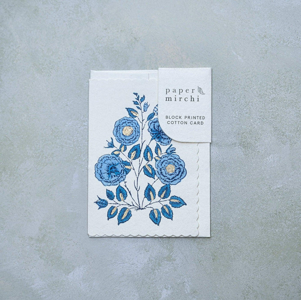 {Paper Mirchi} Hand Block Printed Greeting Card :: Gulab Sapphire