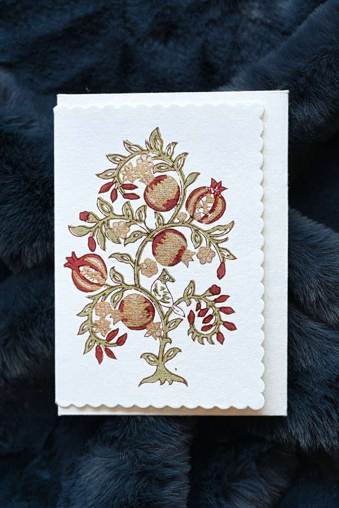 {Paper Mirchi} Hand Block Printed Greeting Card :: Pomegranate Cherry