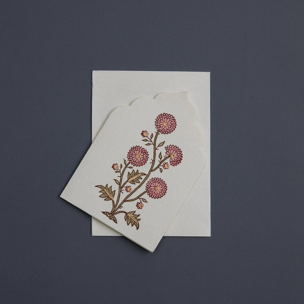 This boxed set of luxury notecards/envelopes is a stationery lover's dream. Each set features 6 beautiful, die-cut notecards and envelopes, handcrafted by artisans in India, using traditional techniques of wood block printing and hand marbling. The notecards and envelopes are held together with a cotton paper belly band and are neatly presented in a keepsake box with a matching hand block printed lid.
