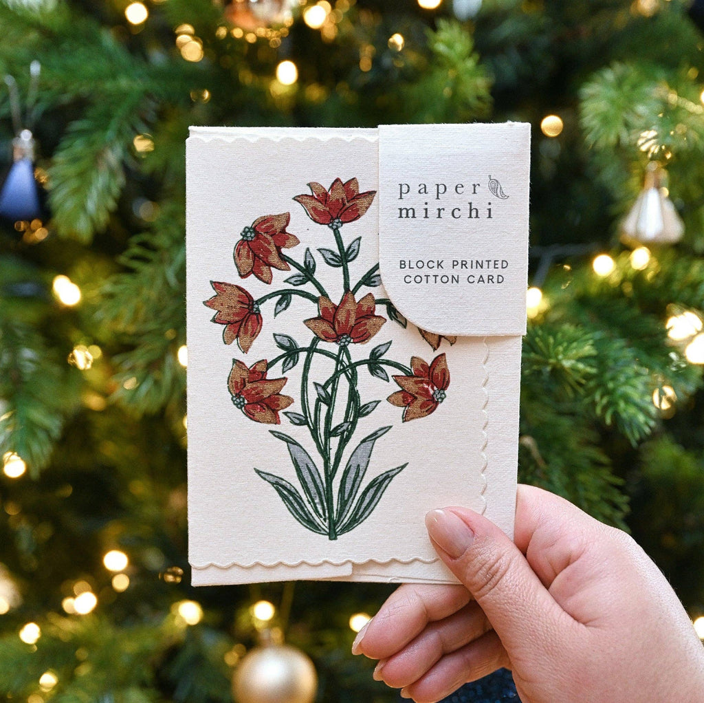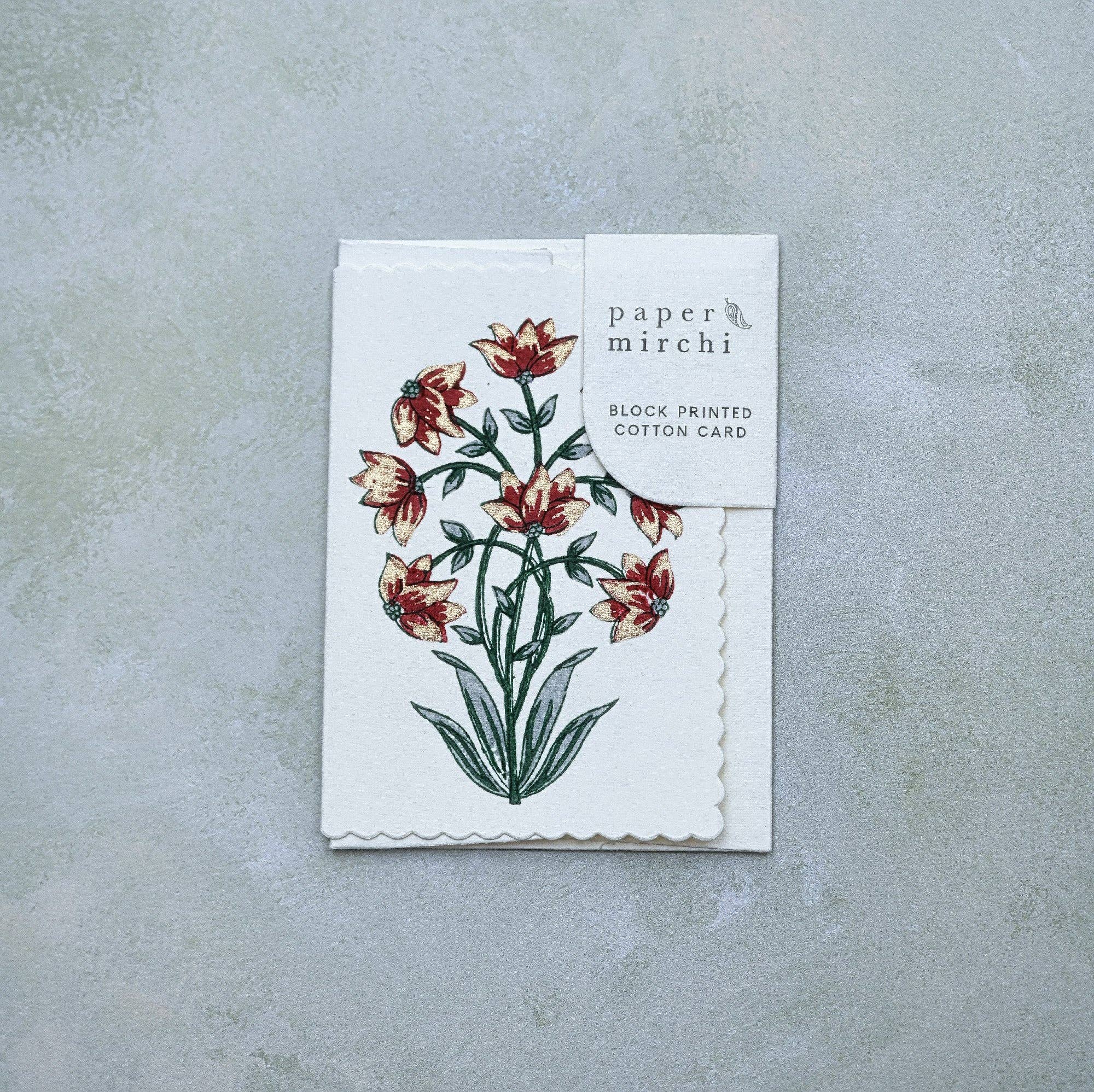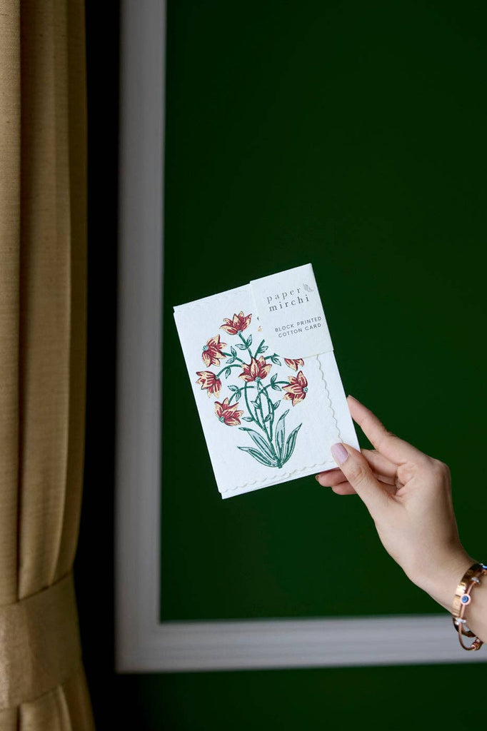 {Paper Mirchi} Hand Block Printed Greeting Card :: Champaca Sage is backordered. It will be shipped when back in stock.