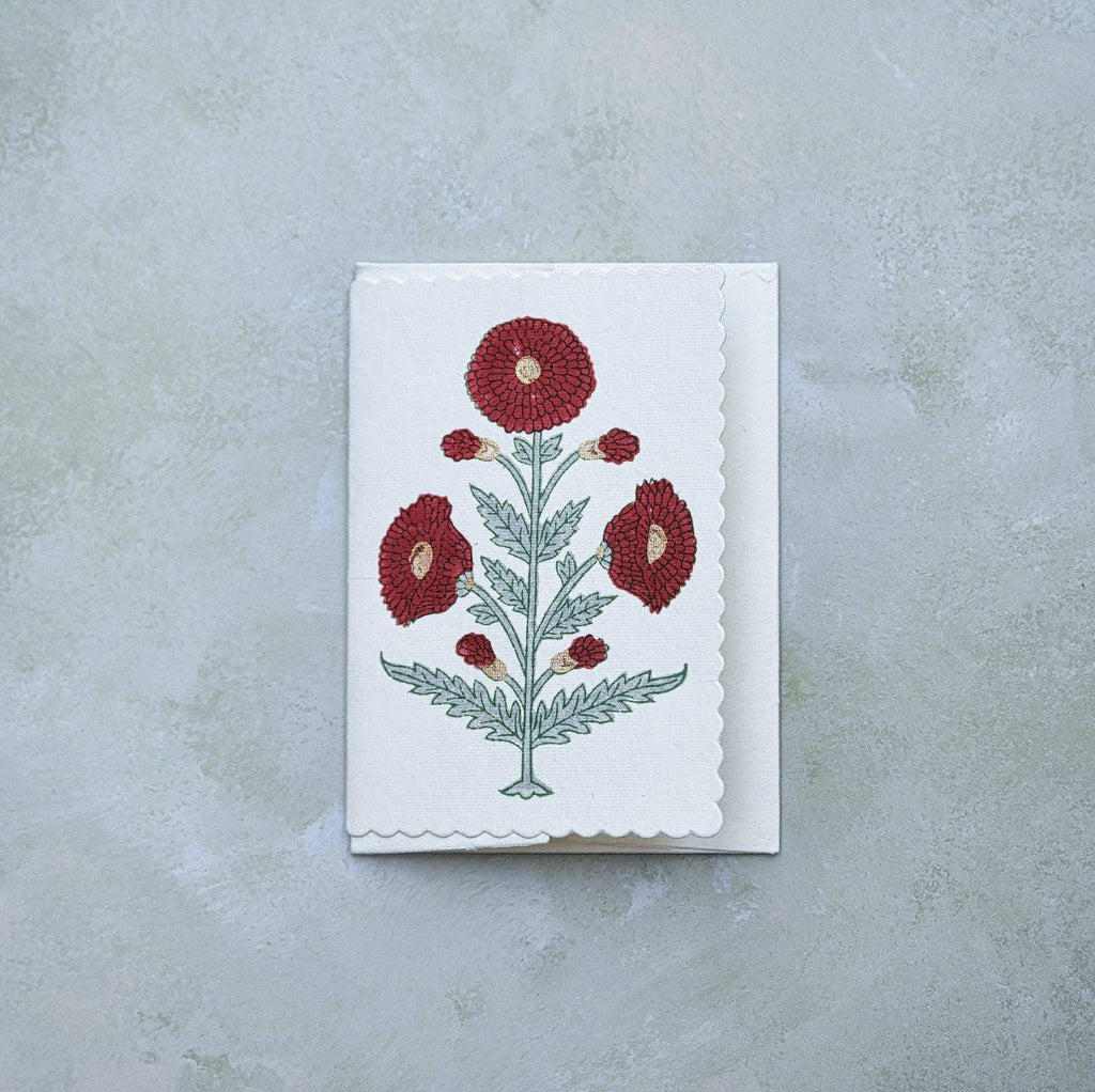 {Paper Mirchi} Hand Block Printed Greeting Card :: Genda Sage