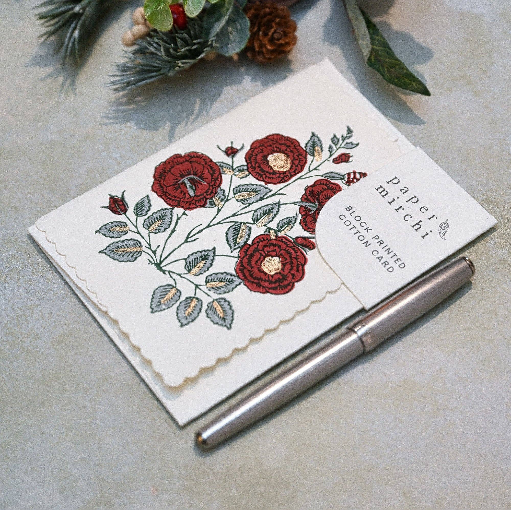 {Paper Mirchi} Hand Block Printed Greeting Card :: Gulab Sage is backordered. It will be shipped when back in stock.