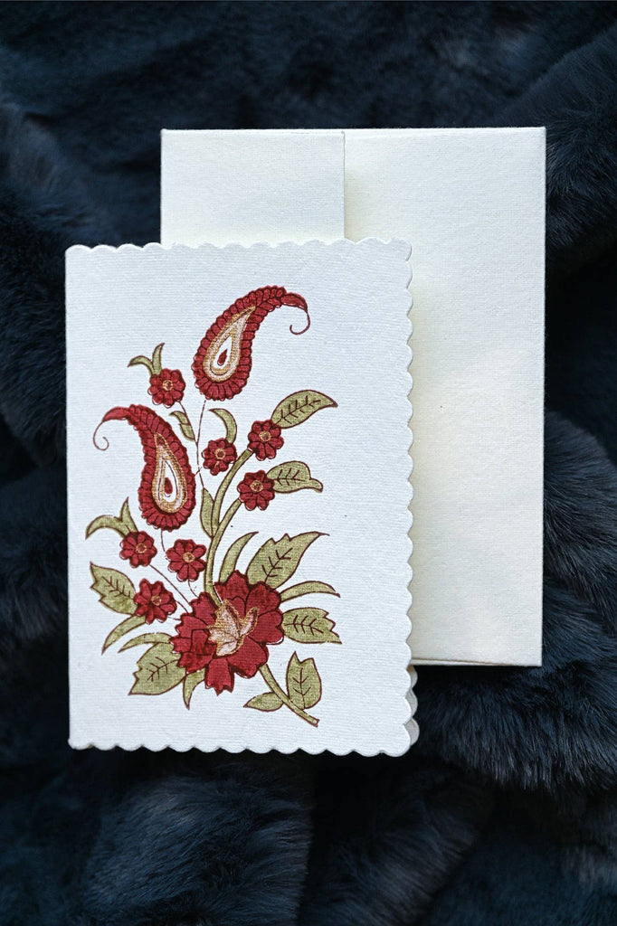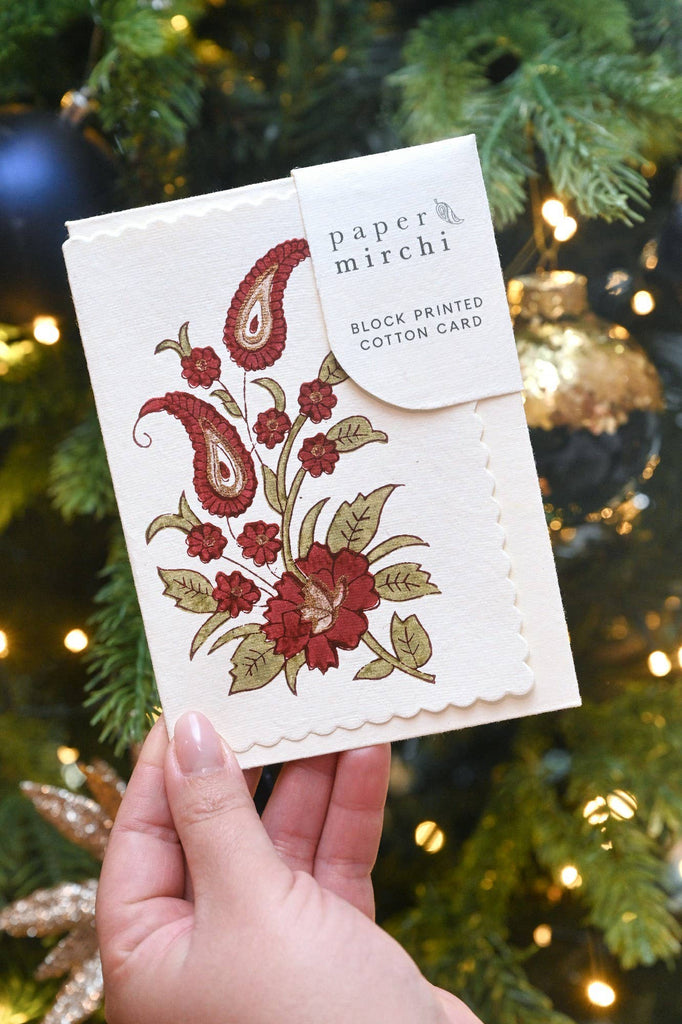{Paper Mirchi} Hand Block Printed Greeting Card :: Kairi Scarlet is backordered. It will be shipped when back in stock.