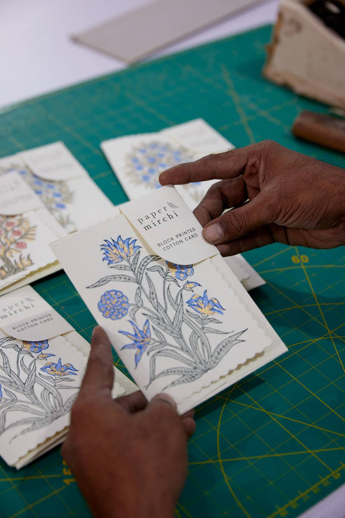 {Paper Mirchi} Hand Block Printed Greeting Card :: Kamal Periwinkle is backordered. It will be shipped when back in stock.