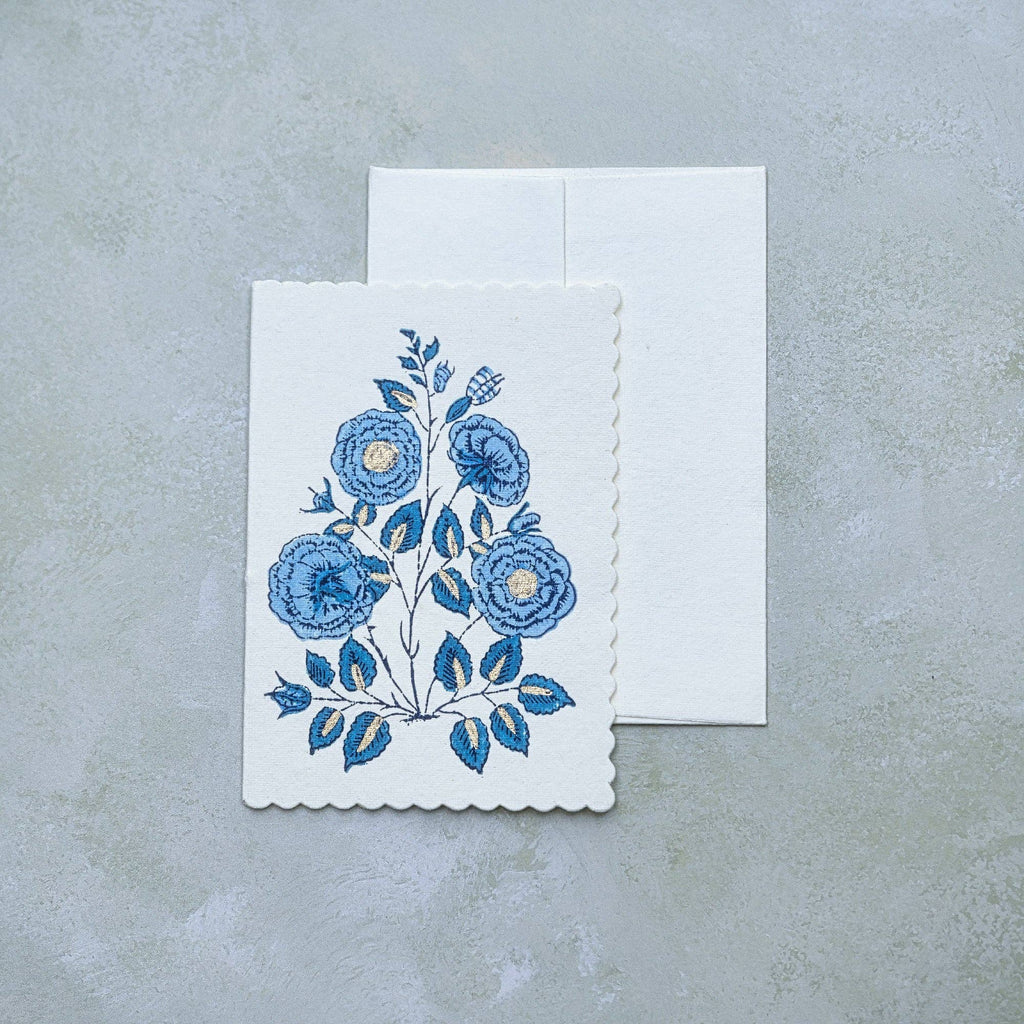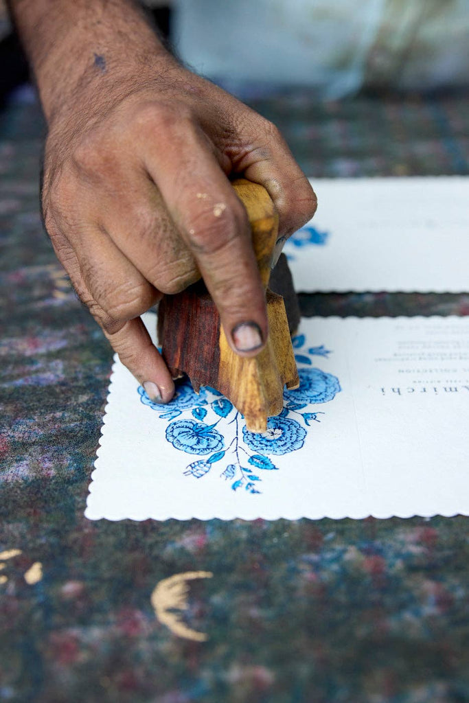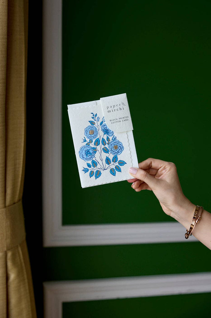 {Paper Mirchi} Hand Block Printed Greeting Card :: Gulab Sapphire