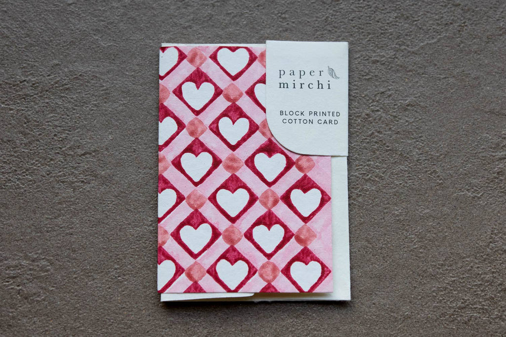 Say ‘I Love You’ with something truly heartfelt. This charming heart card has been crafted by hand and stamped with love. Each block printed card is beautifully unique, handmade by a skilled artisan on luxurious tree-free paper and paired with a beautiful peel-and-seal envelope. Each card and envelope is neatly held together with a tree-free corner tab.