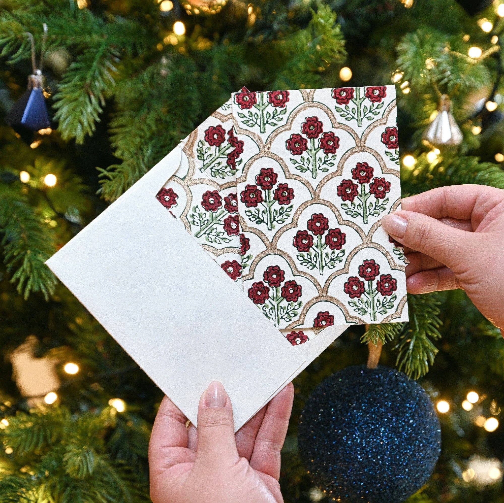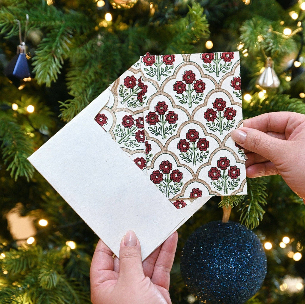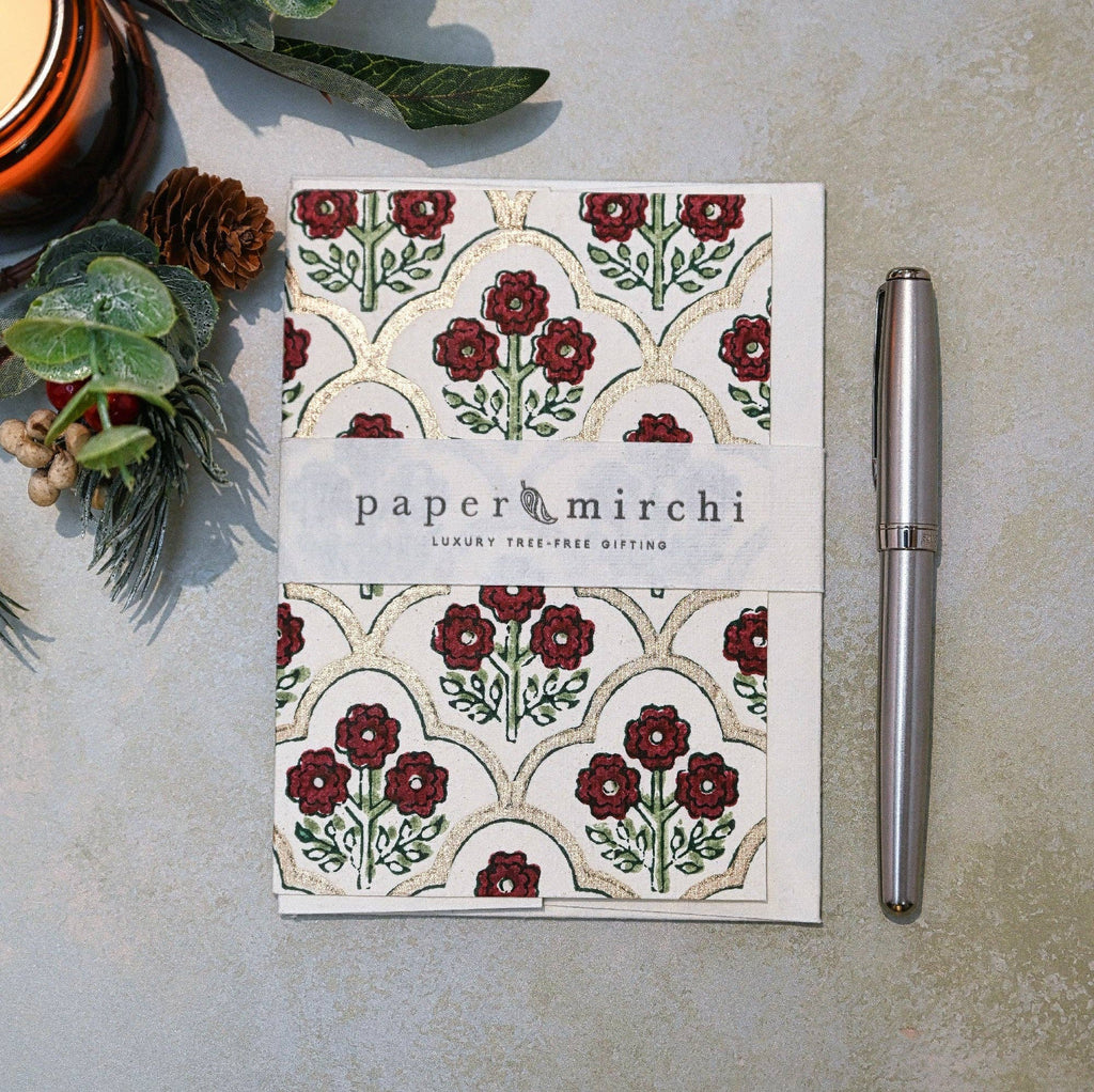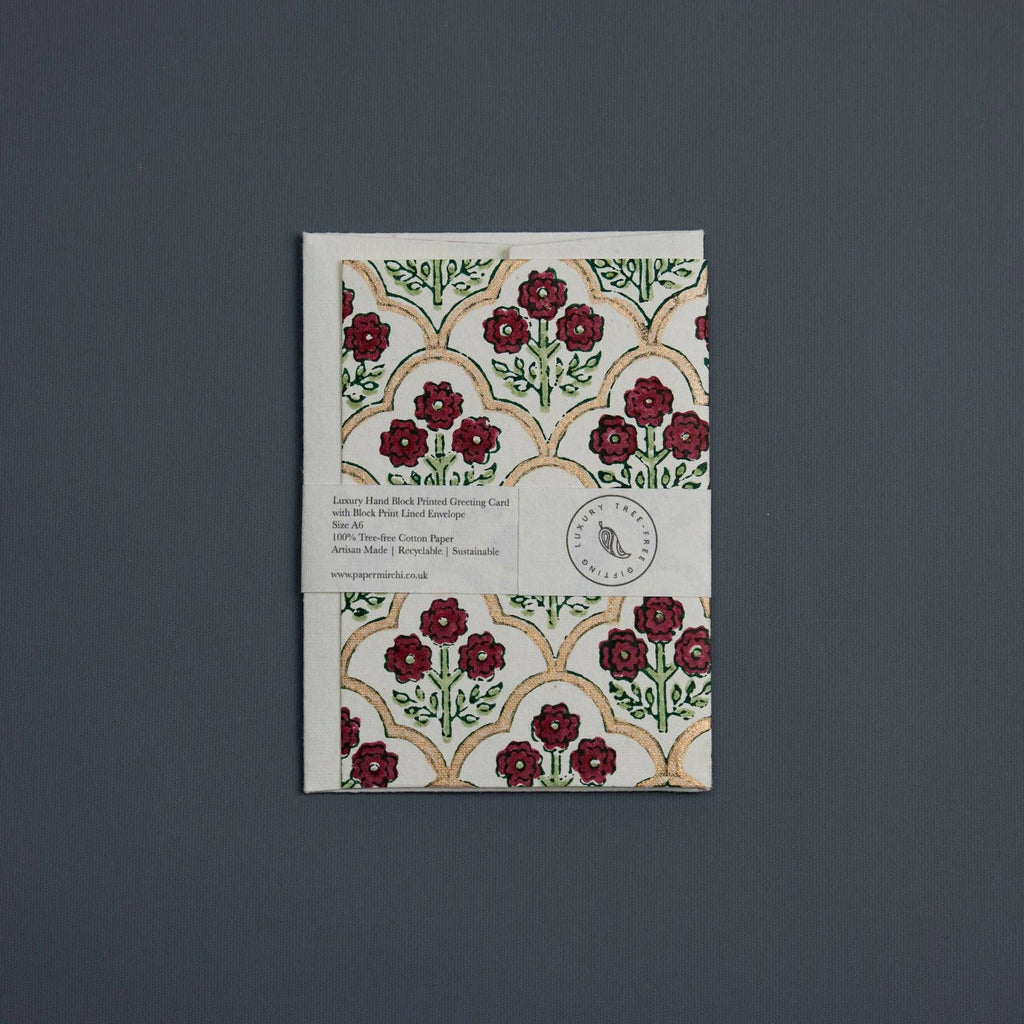 {Paper Mirchi} Hand Block Printed Greeting Card :: Trellis Cherry is backordered. It will be shipped when back in stock.