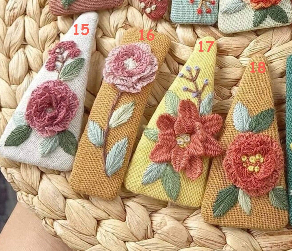 • Each hair barrette is hand embroidered on sturdy stainless steel clip.