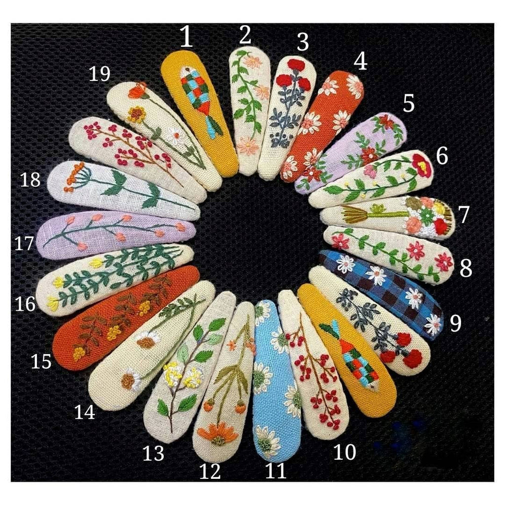 {Quince Fables} Floral Embroidered Linen Teardrop Hair Barrette