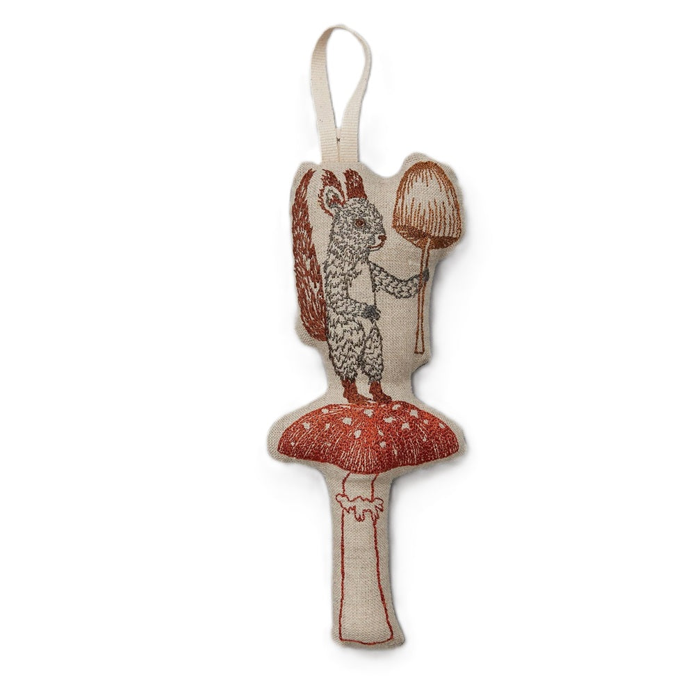 {Coral & Tusk} Linen Ornament :: Squirrel with Mushroom