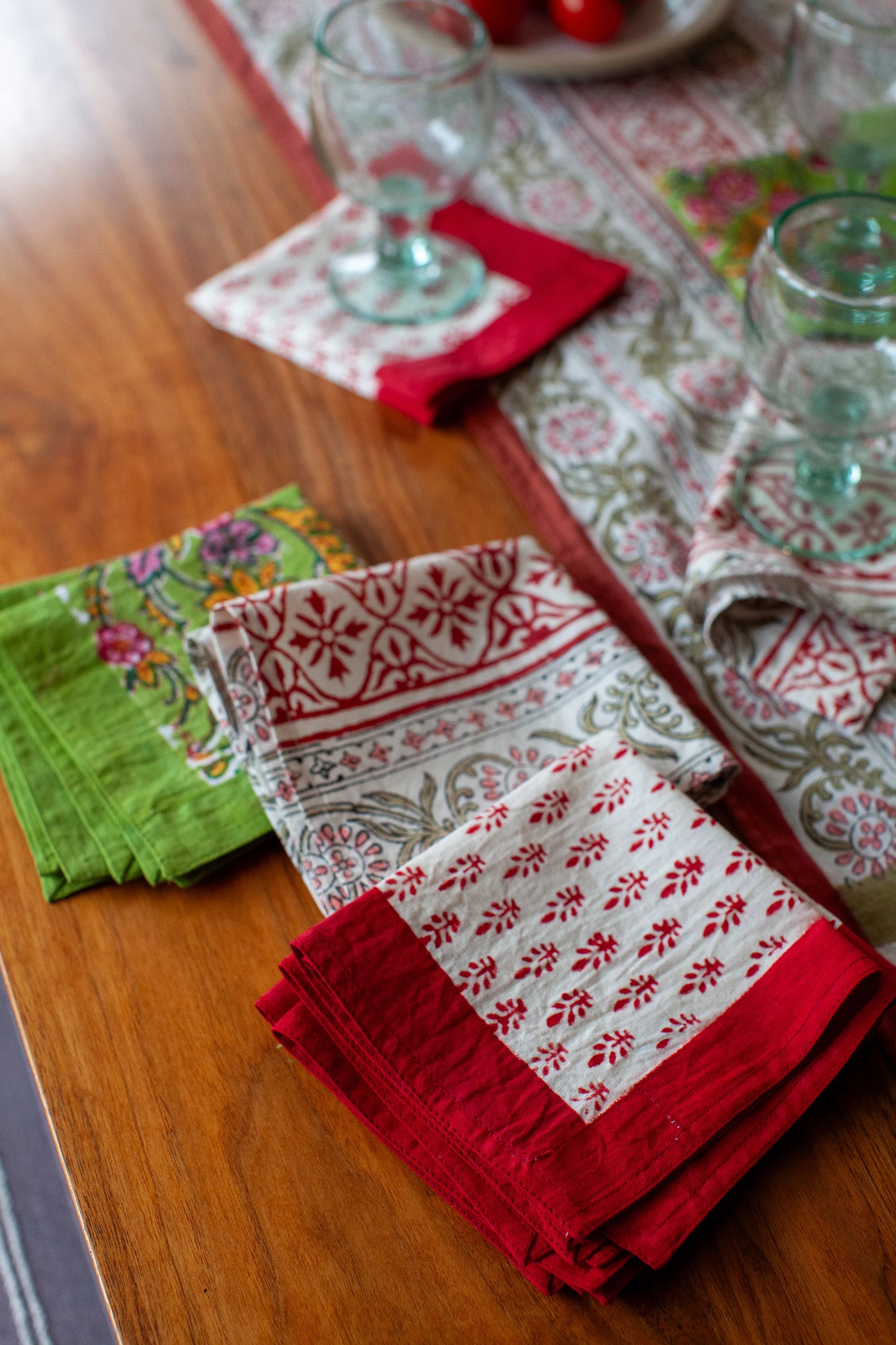 {Kerry Cassill} Hand Block Printed Cotton Napkin :: Cocktail :: Holiday Border is backordered. It will be shipped when back in stock.