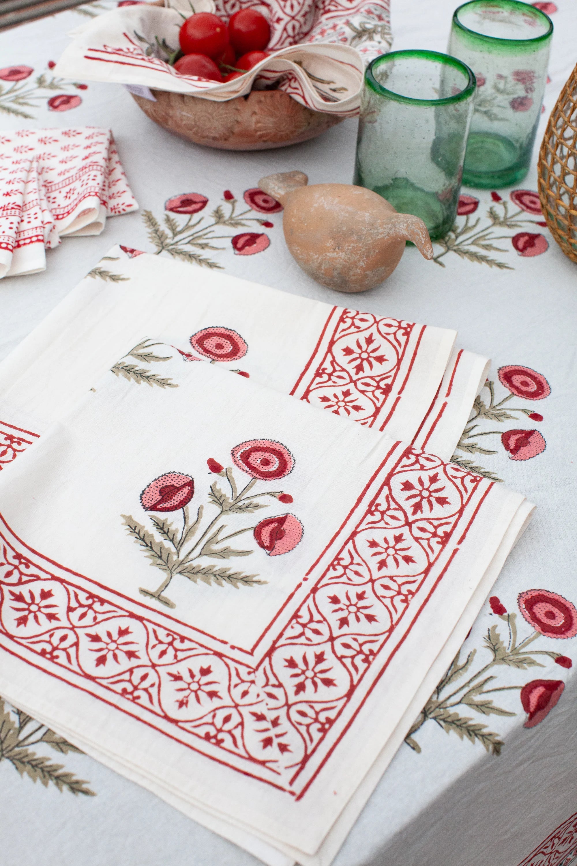 {Kerry Cassill} Hand Block Printed Cotton Napkin :: Cocktail :: Holly Poppy is backordered. It will be shipped when back in stock.