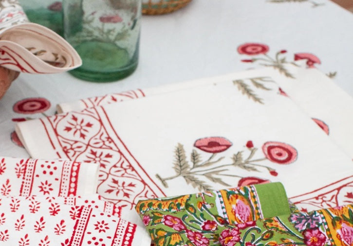 {Kerry Cassill} Hand Block Printed Cotton Napkin :: Holly Poppy is backordered. It will be shipped when back in stock.