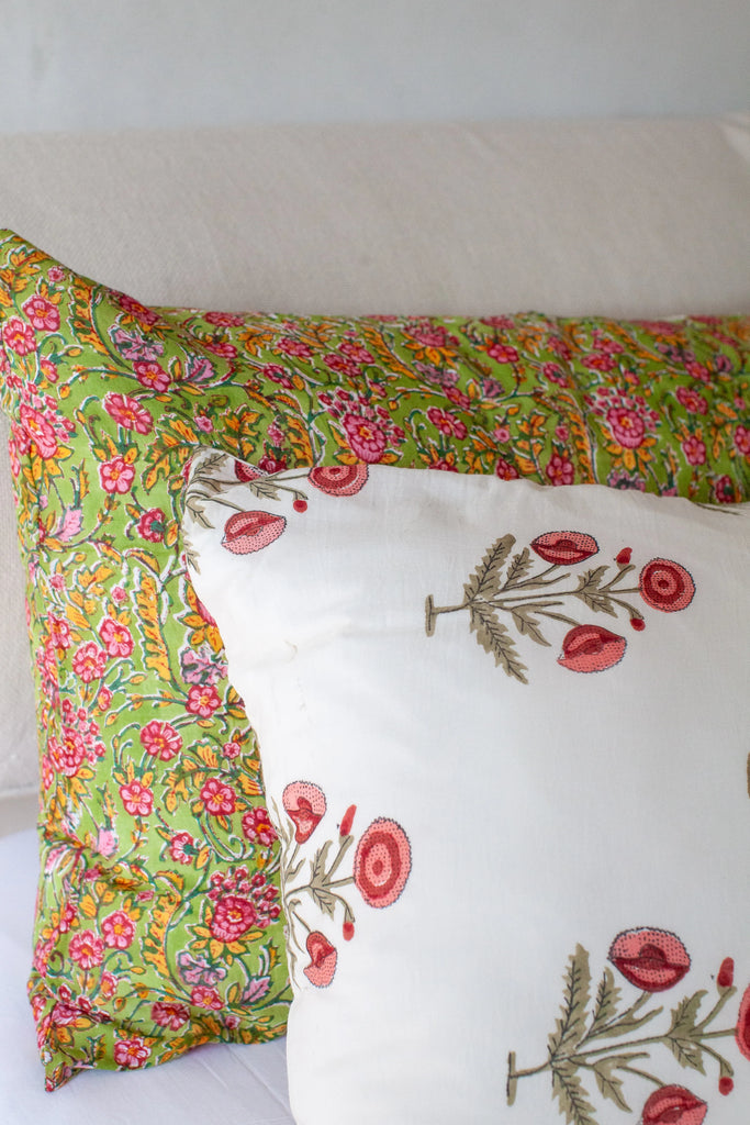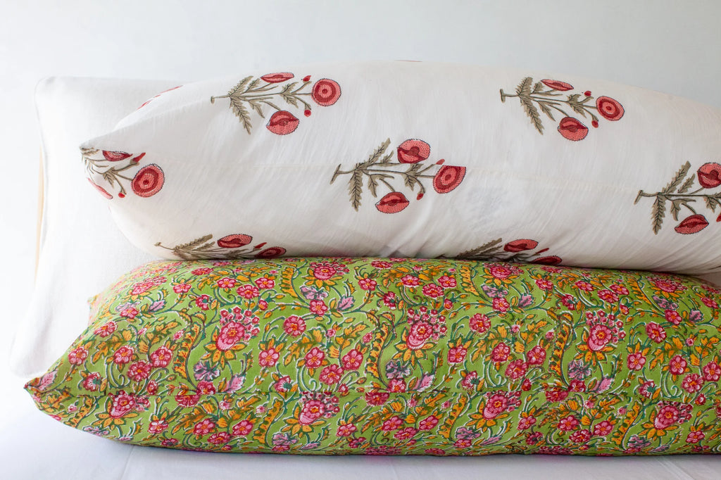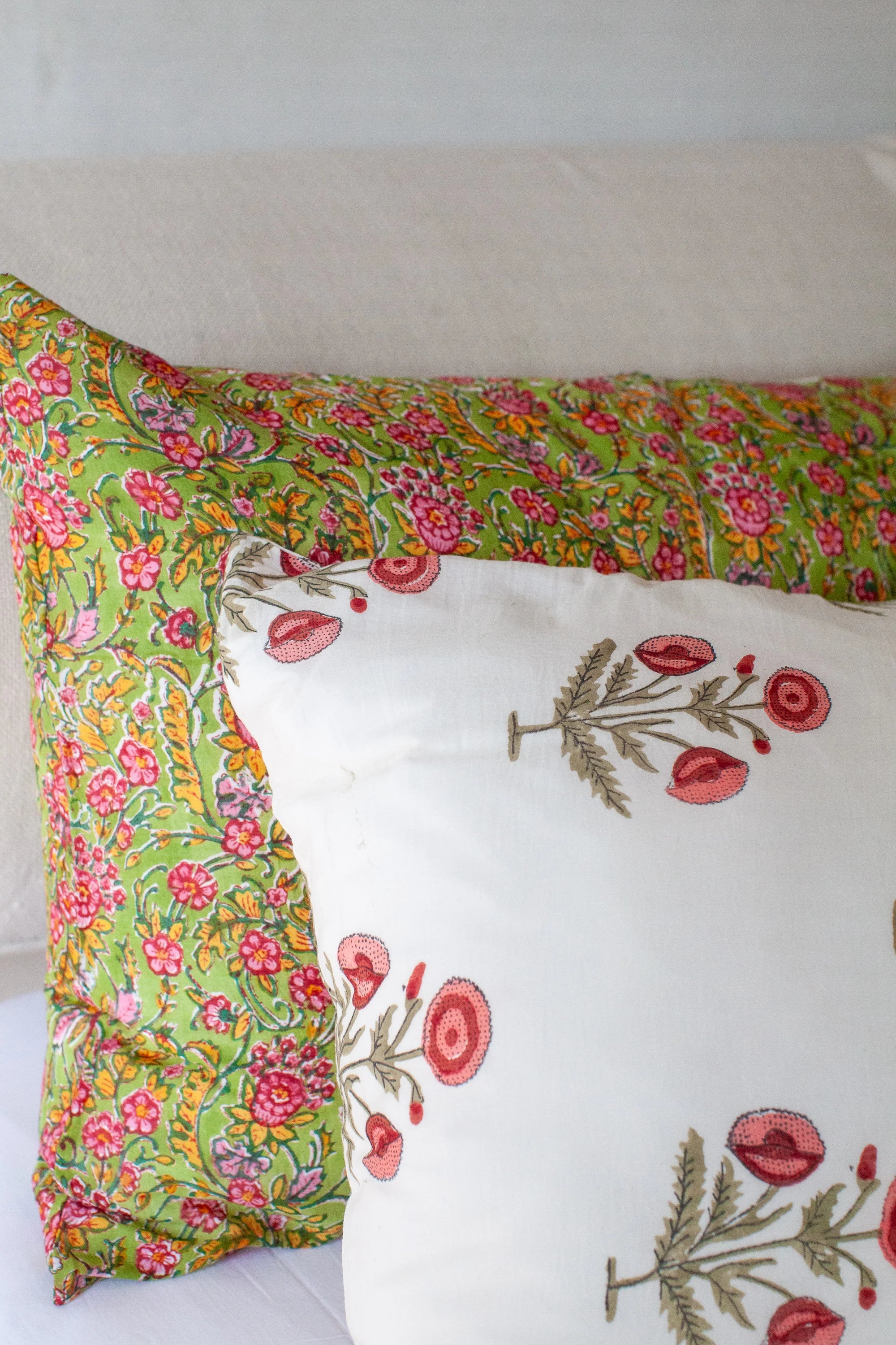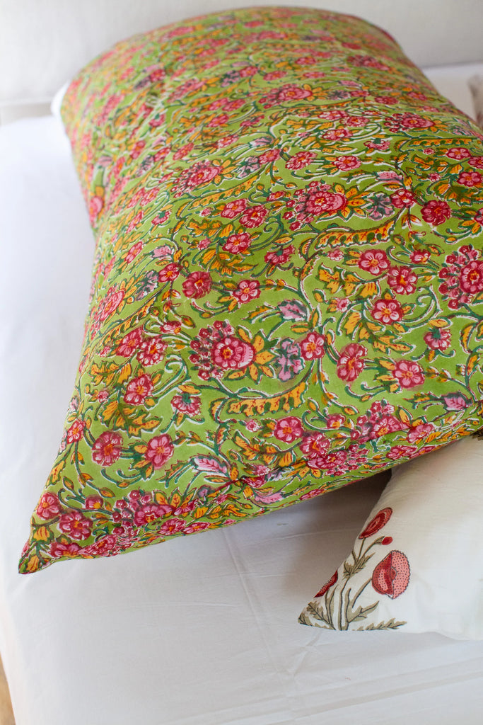 {Kerry Cassill} Hand Block Printed Cotton Pillow Case :: Olive Floral :: Standard is backordered. It will be shipped when back in stock.