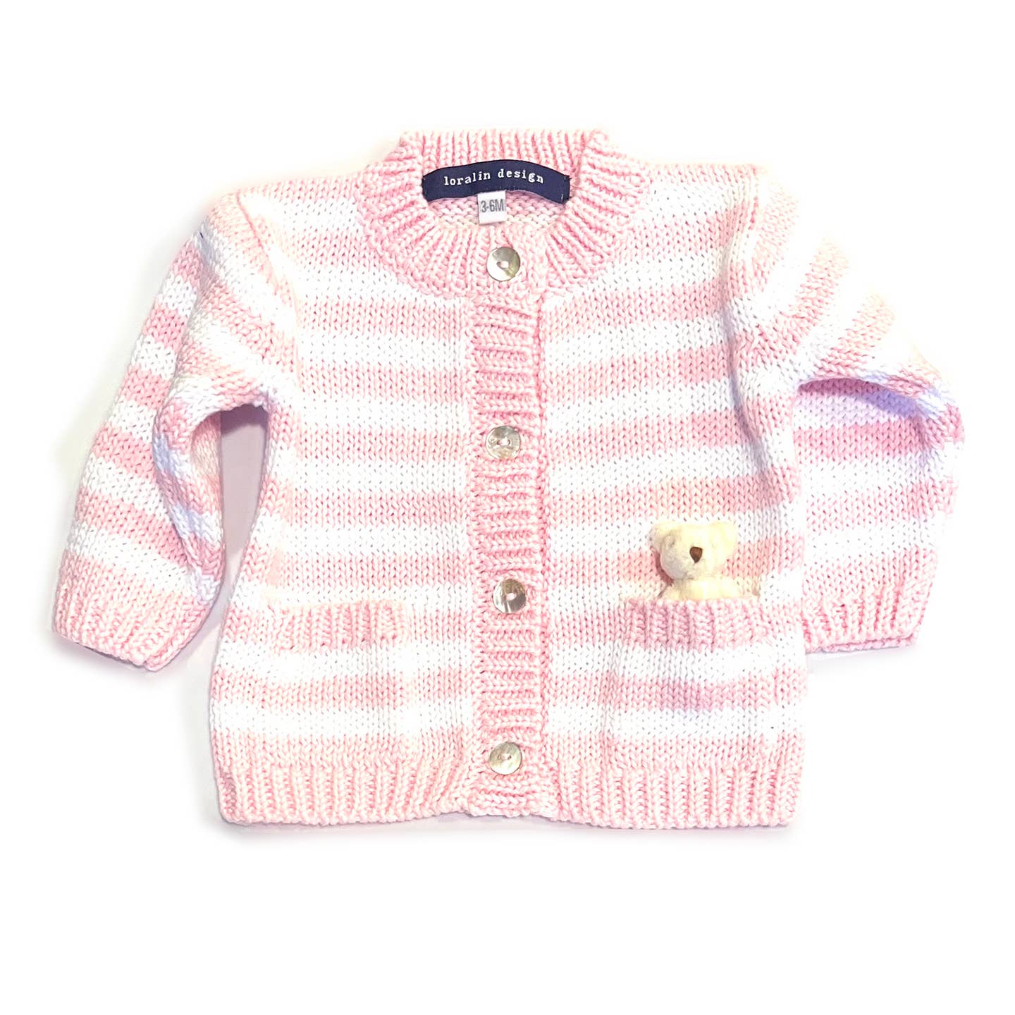 {Loralin Design} Cotton Cardigan Sweater :: Pink Striped Bear - 3-6 mos is backordered. It will be shipped when back in stock.