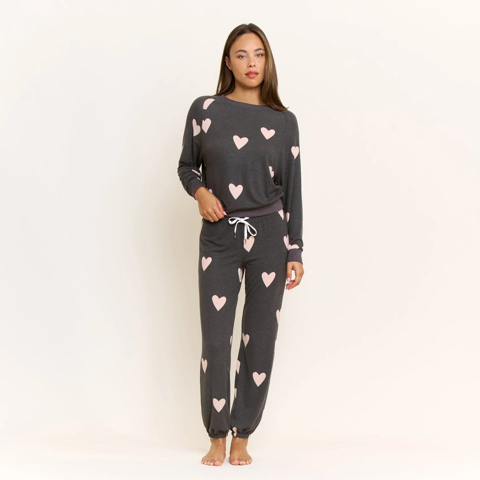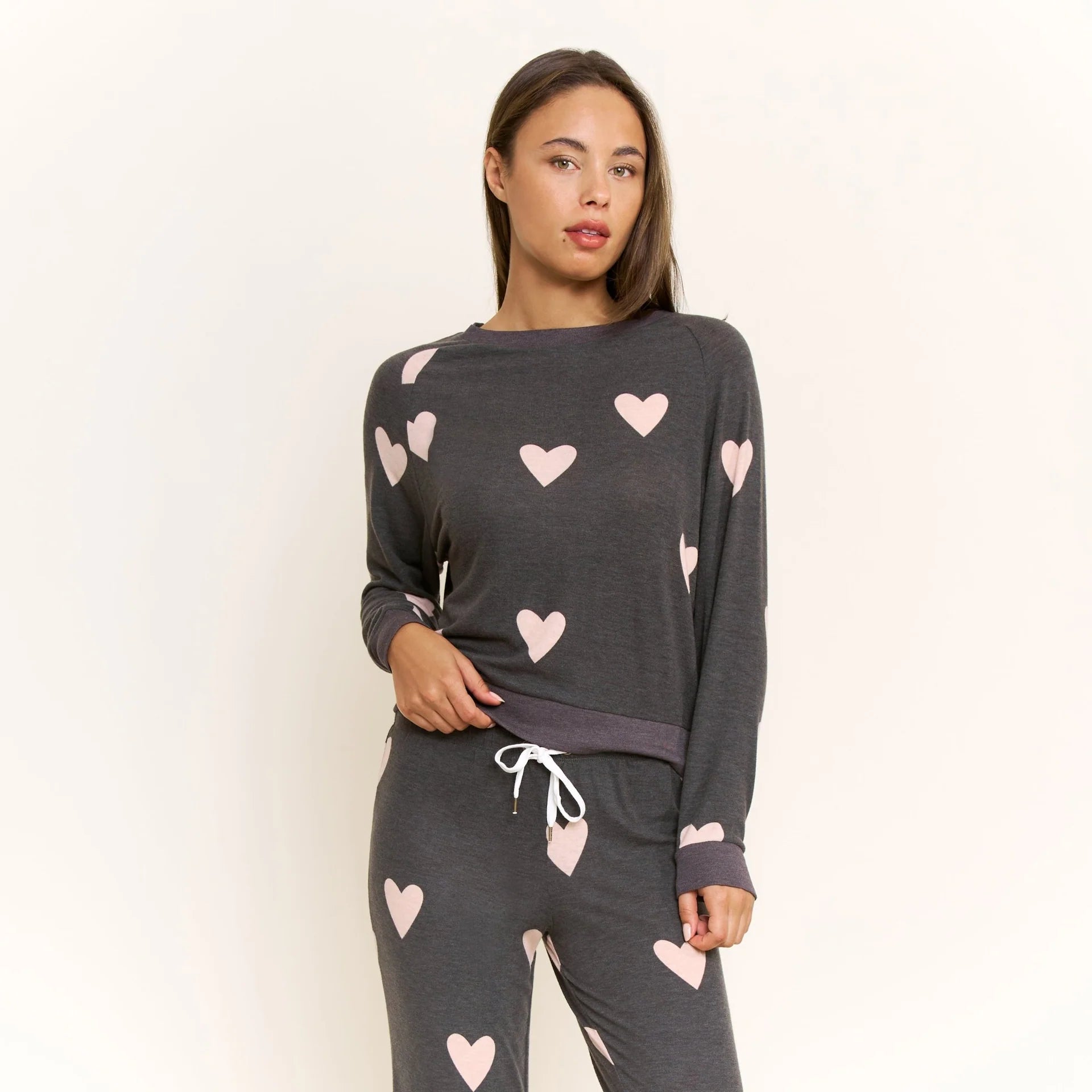 A Honeydew year round favorite, this raglan, crew neck long sleeve is perfectly paired with a drawstring jogger in a lightweight brushed jersey.