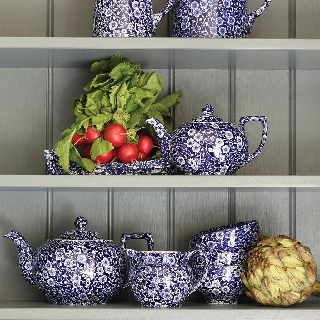 Inspired by 19th-century indigo fabrics, Burleigh’s Blue Calico tableware range brings quintessential country charm to your home. The rich cobalt blue tones and scrolling blossom design complement both casual family dining and special occasions alike.
