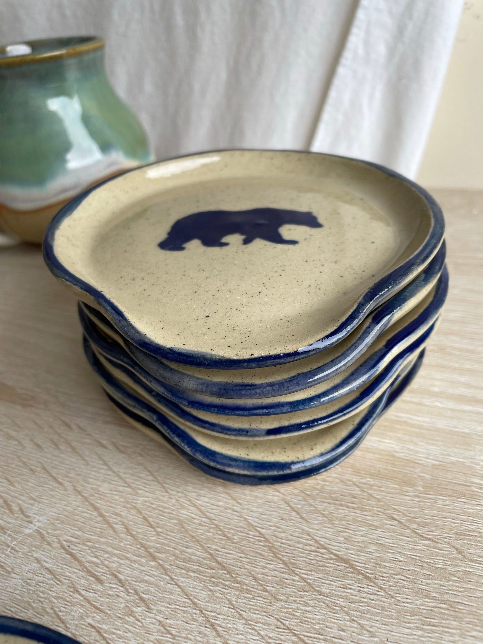 Custom blue bear spoon rest, exclusive to Ellington & French!