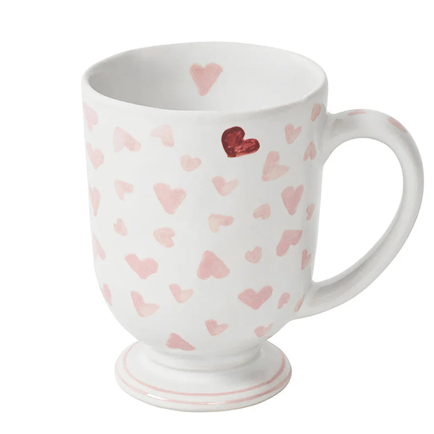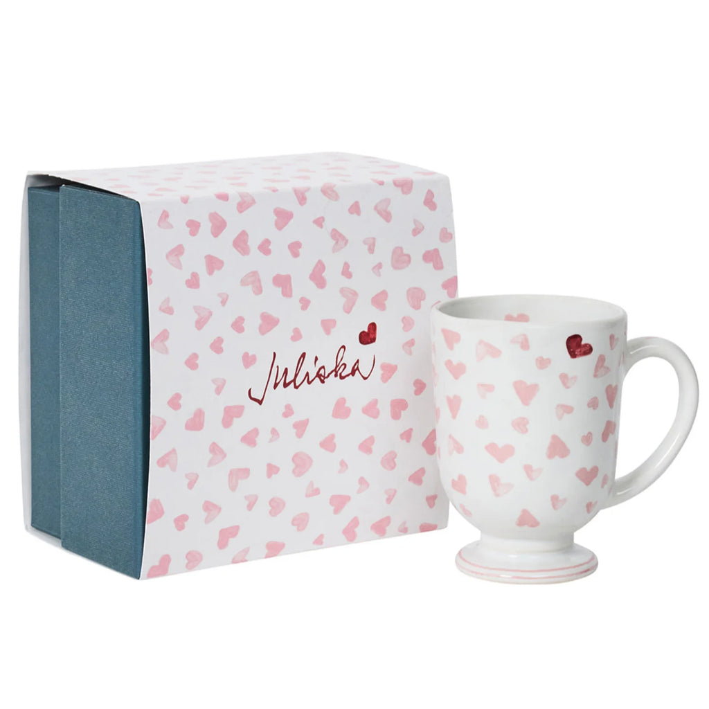 Start your day with a little bit of love. The Juliska's Love You More Mug in Pink features charming heart designs in a soft pink hue and one cherry-red accent.