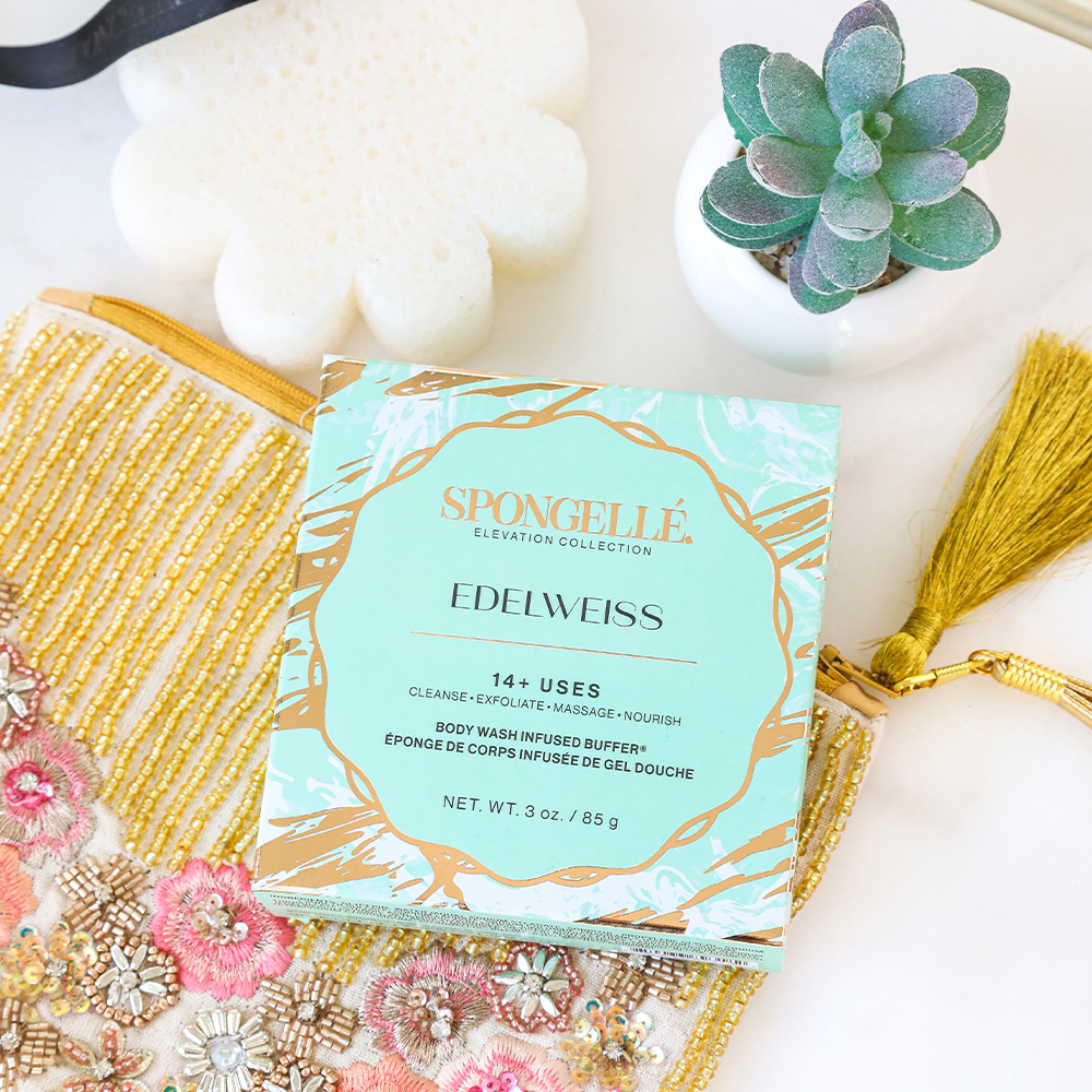 These buffers with built-in body wash are infused with extracts of yuzu, edelweiss and vetiver root to cleanse, exfoliate, massage, and hydrate the skin for a spa-like pampering experience at home. Good for 14+ uses.