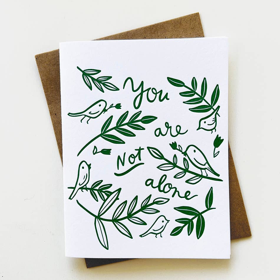 "Not Alone" support card. Letterpress printed on thick cotton paper and packaged with a coordinating envelope.