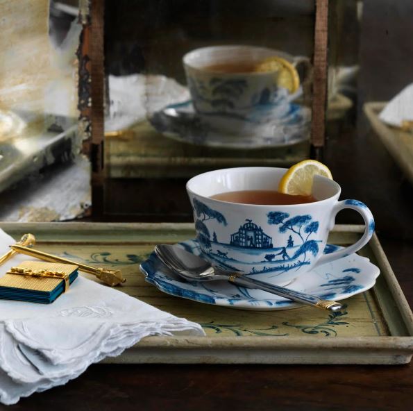 Juliska's quintessentially British stoneware pattern joyfully depicts the narrative of English country life in a way that is both engaging and timeless. A perfect fusion of age-old decorative techniques with unrivaled modern functionality, each piece celebrates a different element of English architecture, landscape, or activity—the lovely main house, the conservatory, a tranquil boating lake, beautiful gardens, or kite fliers.