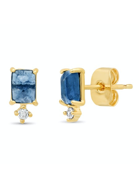 {Tai} Stud Earrings :: Rectangle with CZ Accents :: Gold